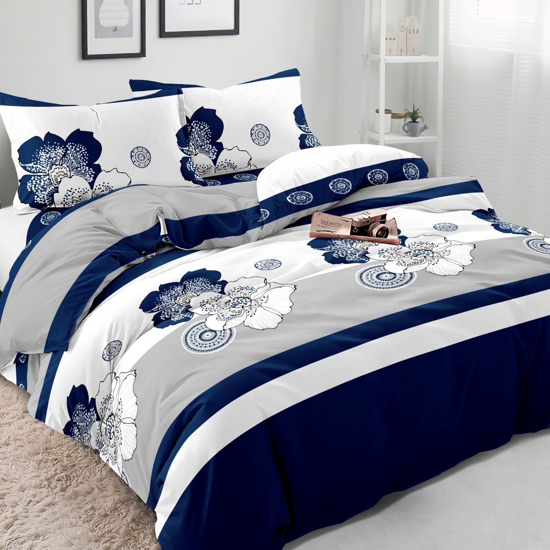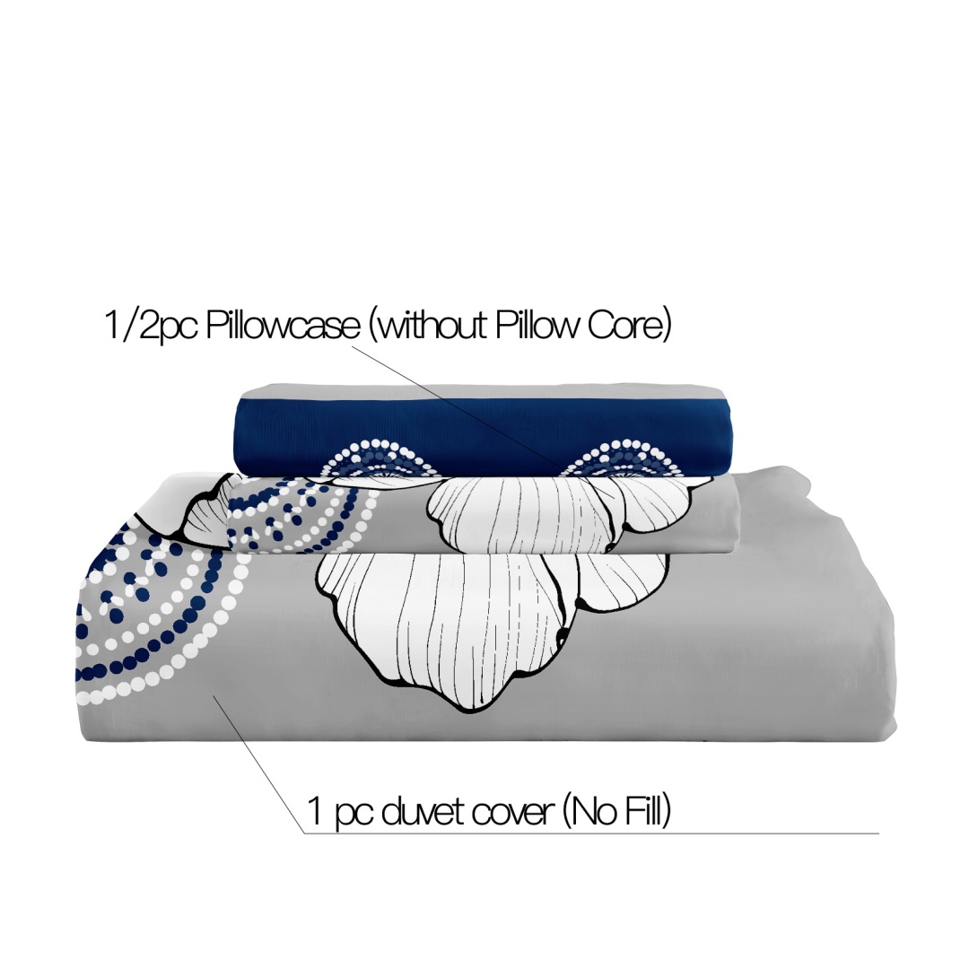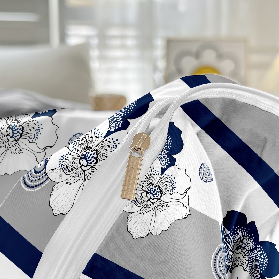 1 Housse de couette + 2 Taies d'oreiller | Literie géométrique florale bleue et blanche, Douce et Confortable, Literie en polyester respirant pour la décoration de chambre et de chambre d'amis, Utilisation toutes saisons