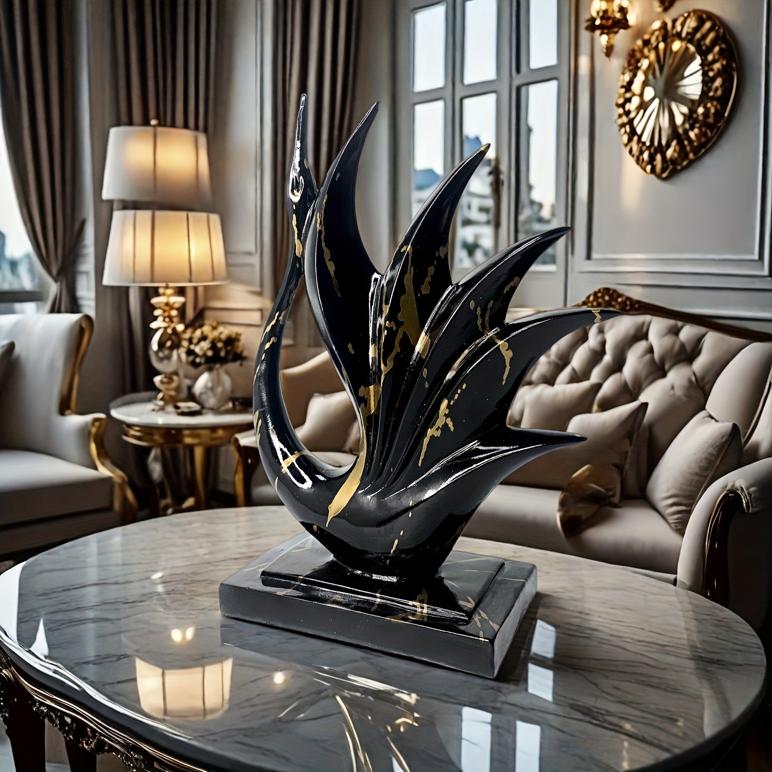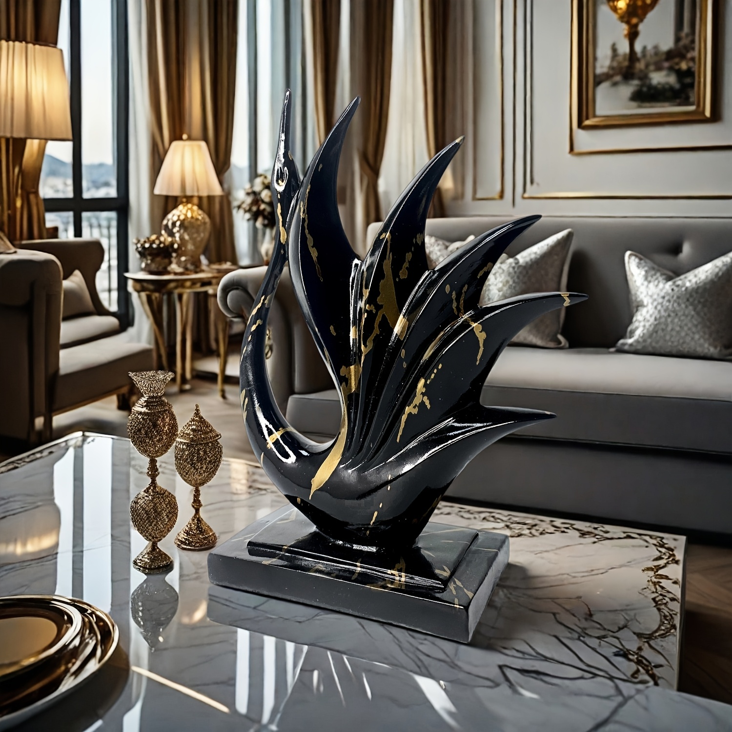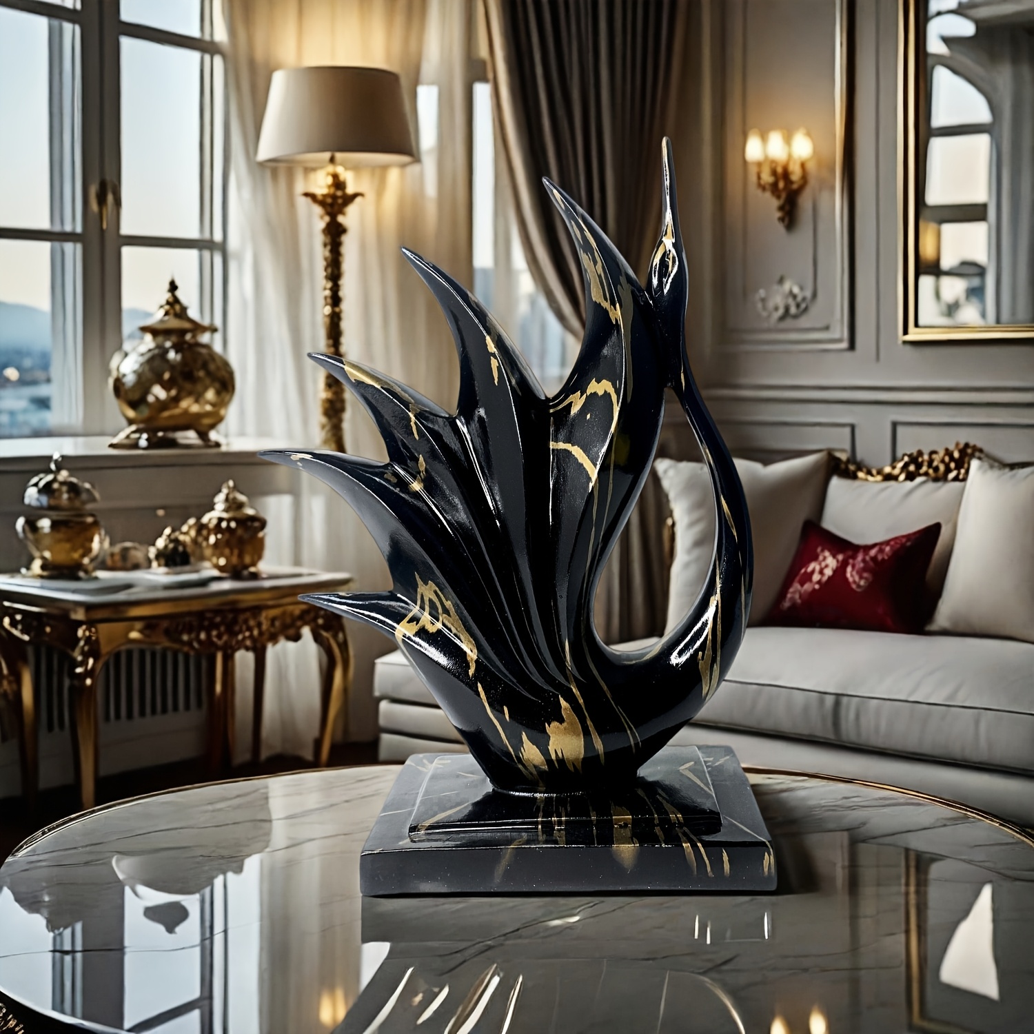 1 pièce Statue de cygne danseur en résine noir et or élégante – Design moderne et abstrait – Coloris haut de gamme noir et or – Parfait pour la décoration de la maison et du bureau – Idéal pour Noël, la Saint-Valentin, Thanksgiving, etc. – Décoration de d