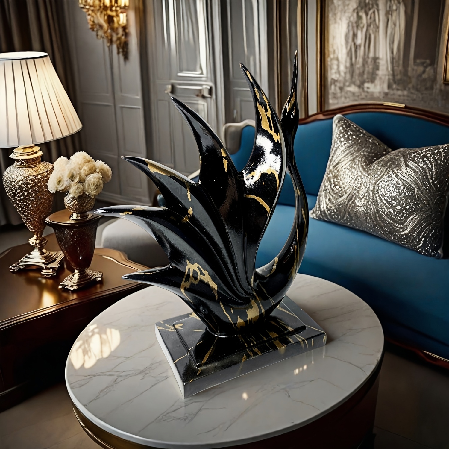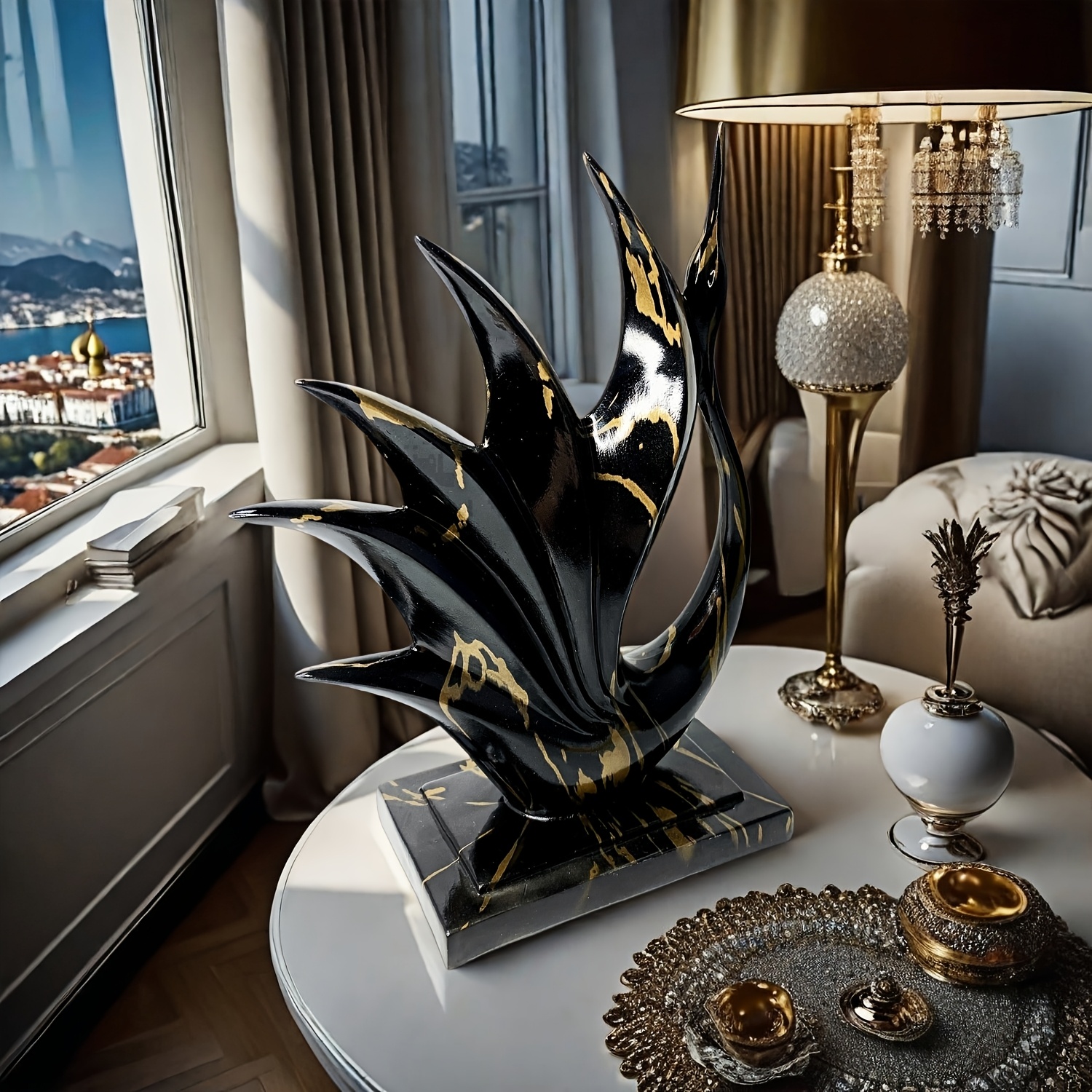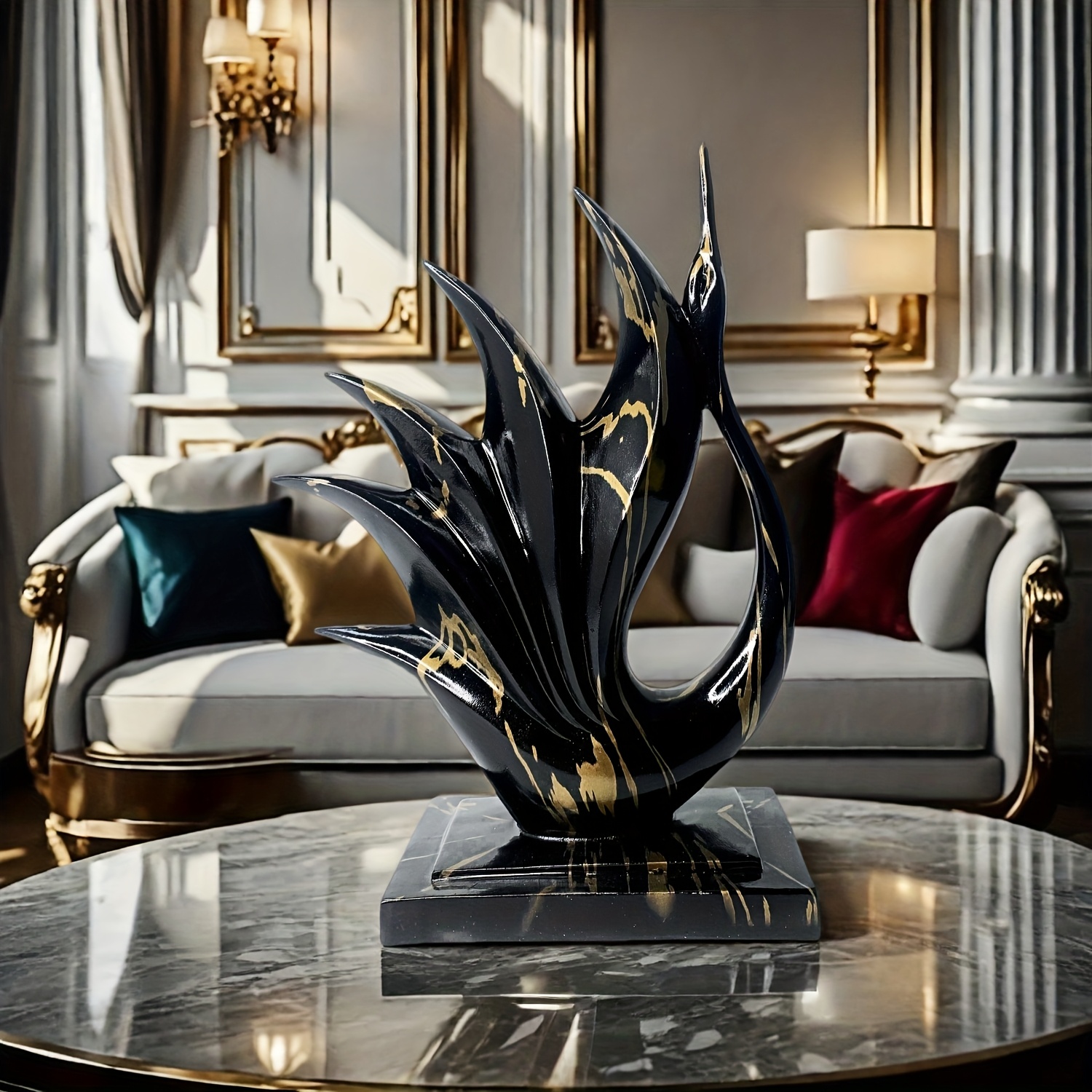 1 pièce Statue de cygne danseur en résine noir et or élégante – Design moderne et abstrait – Coloris haut de gamme noir et or – Parfait pour la décoration de la maison et du bureau – Idéal pour Noël, la Saint-Valentin, Thanksgiving, etc. – Décoration de d