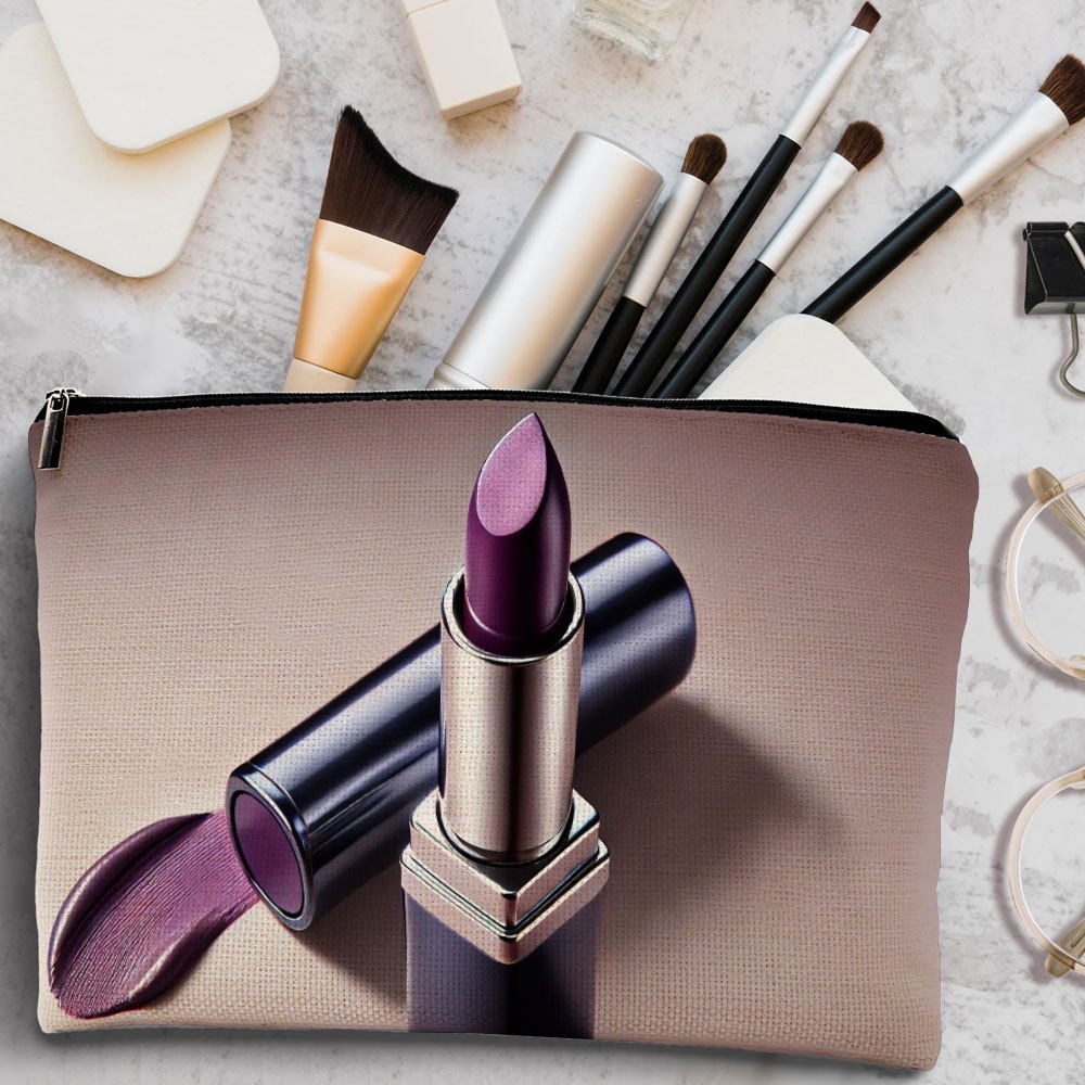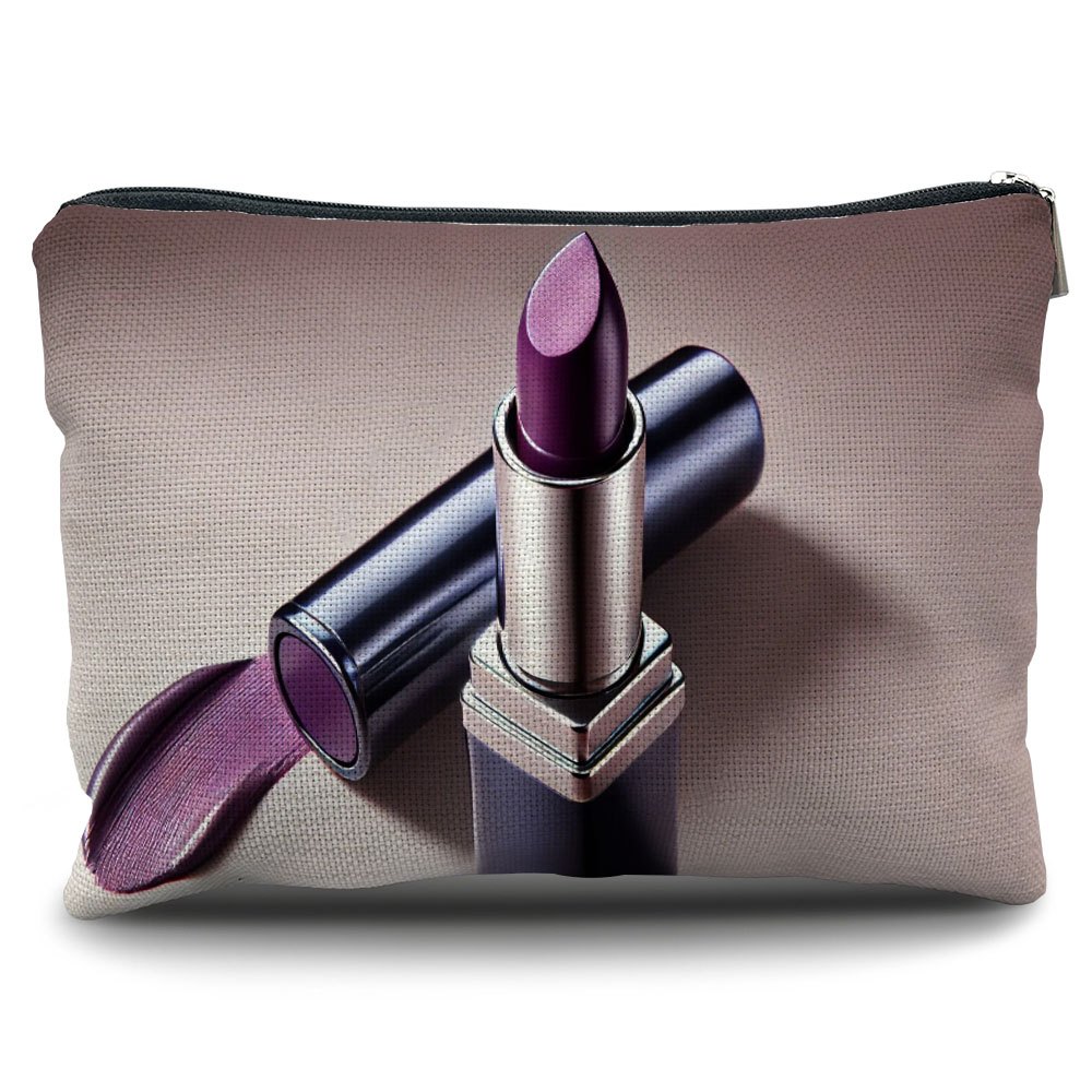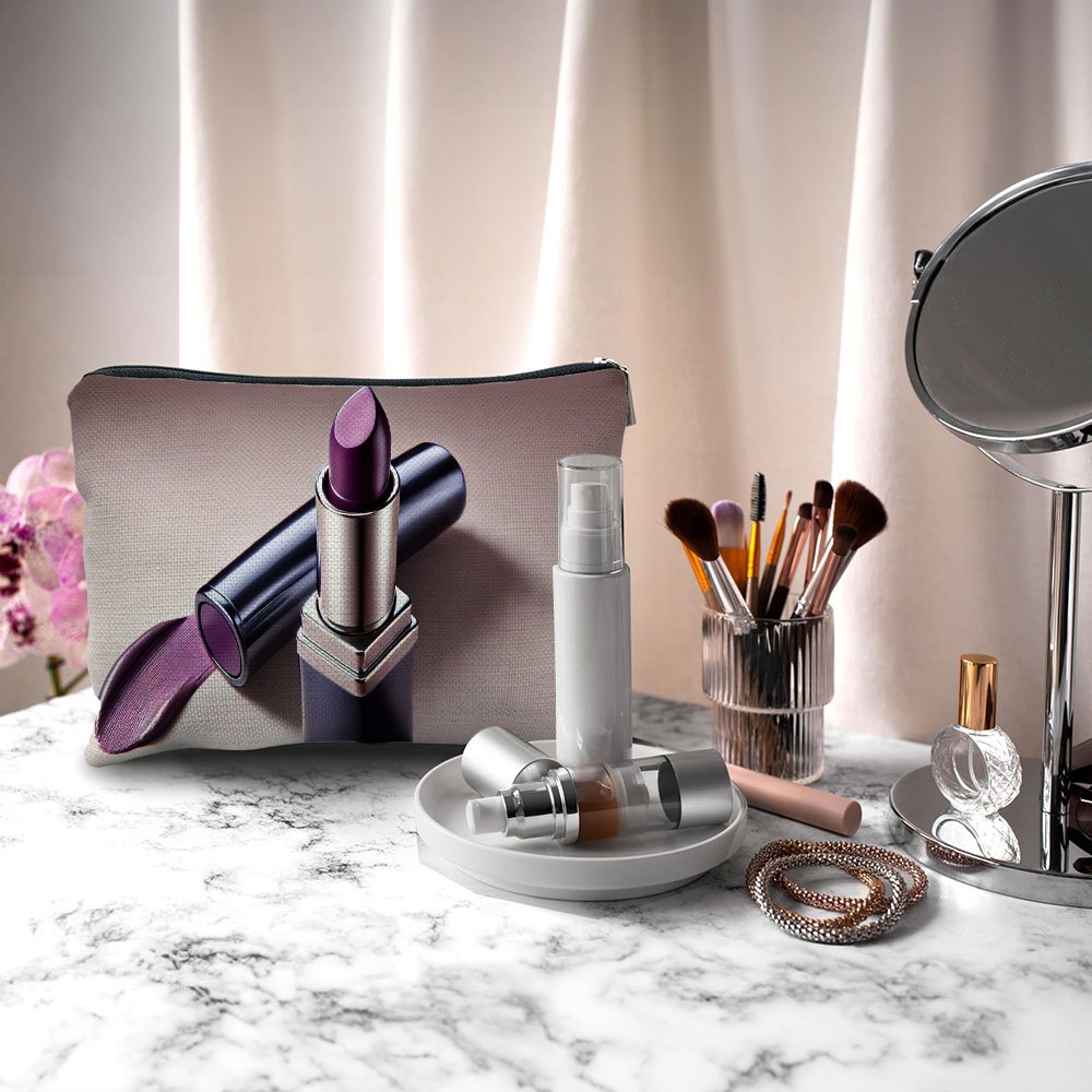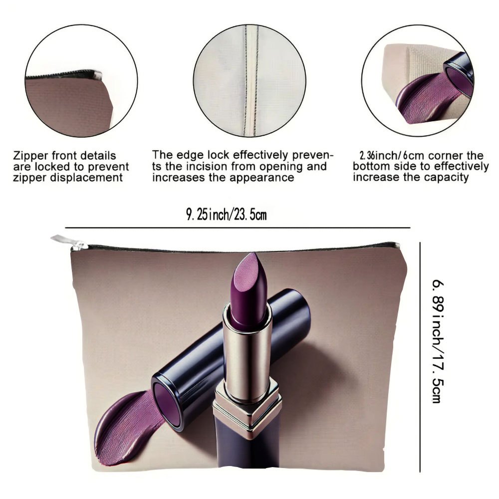 1 trousse de Cosmétique pour femmes avec rouge à lèvres violet – Organisateur élégant violet avec fermeture éclair, trousse de toilette réutilisable en lin pour rouges à lèvres, eyeliner, cadeau de Noël et du Nouvel An pour femmes et les passionnées de be