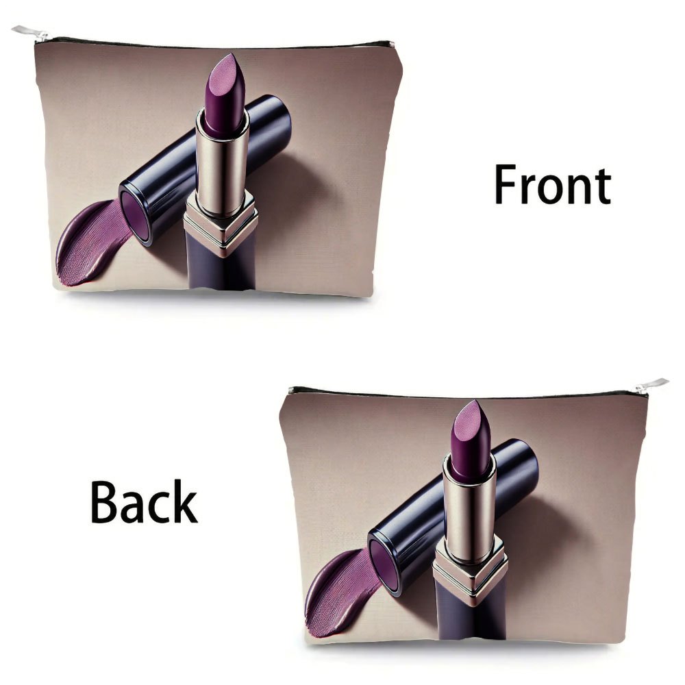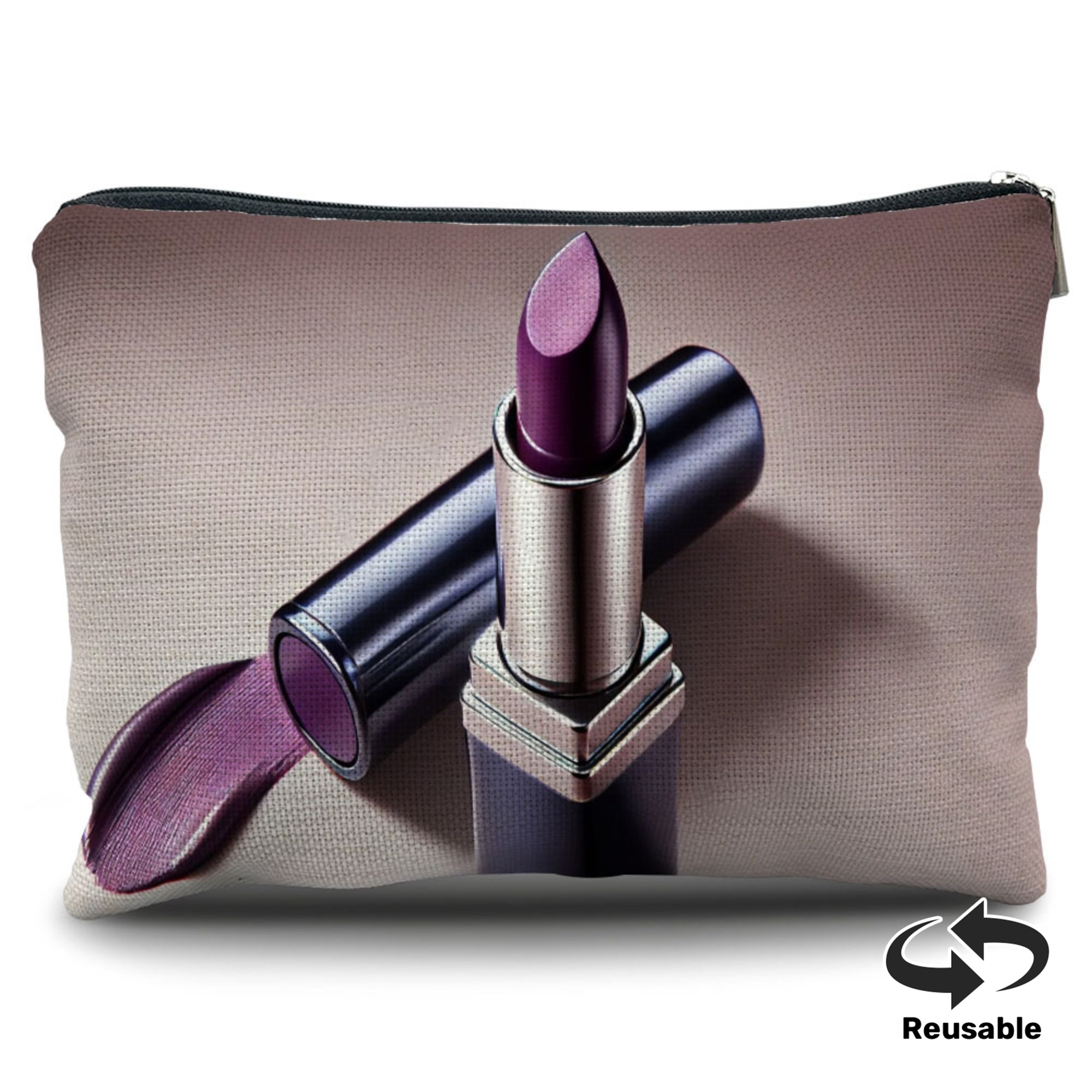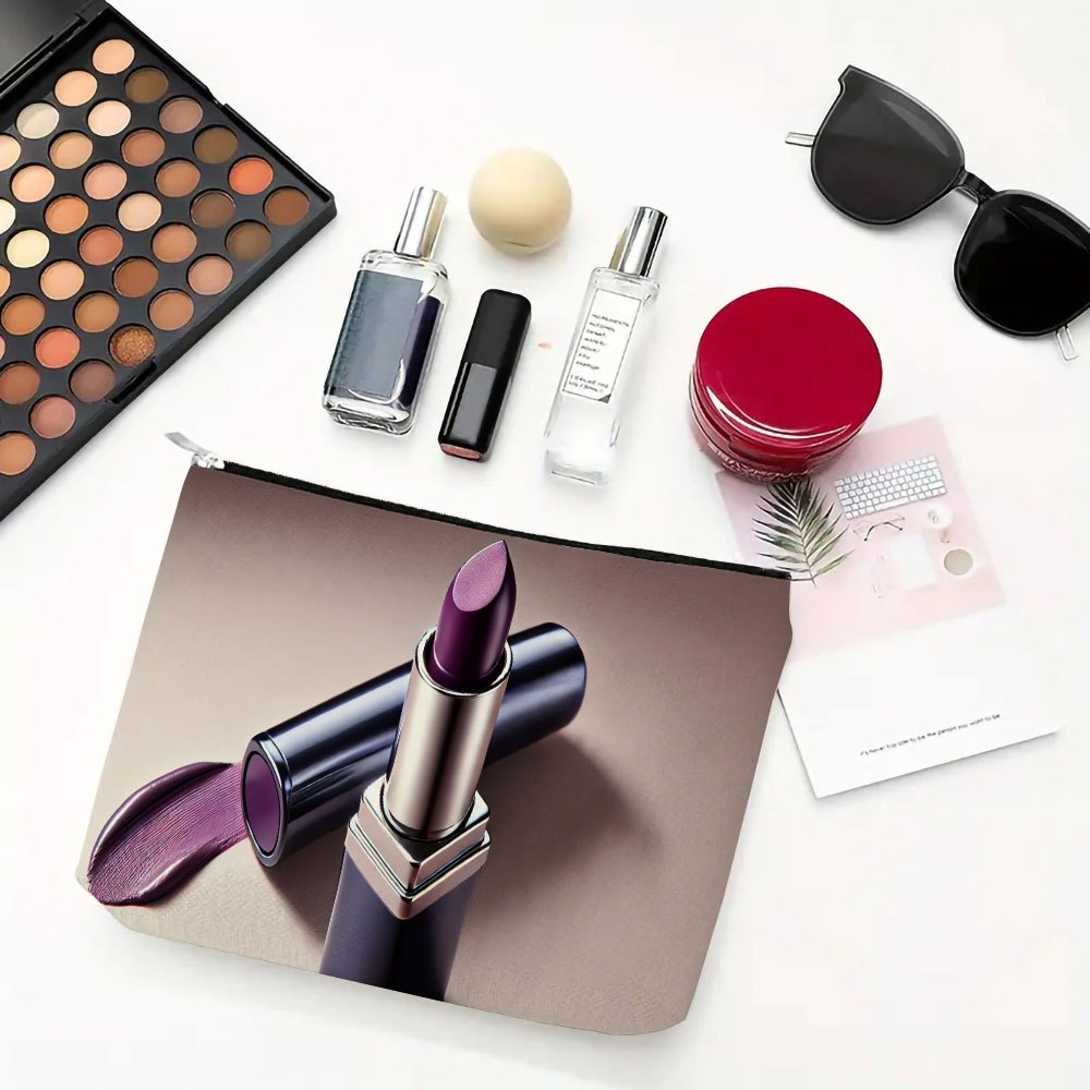 1 trousse de Cosmétique pour femmes avec rouge à lèvres violet – Organisateur élégant violet avec fermeture éclair, trousse de toilette réutilisable en lin pour rouges à lèvres, eyeliner, cadeau de Noël et du Nouvel An pour femmes et les passionnées de be