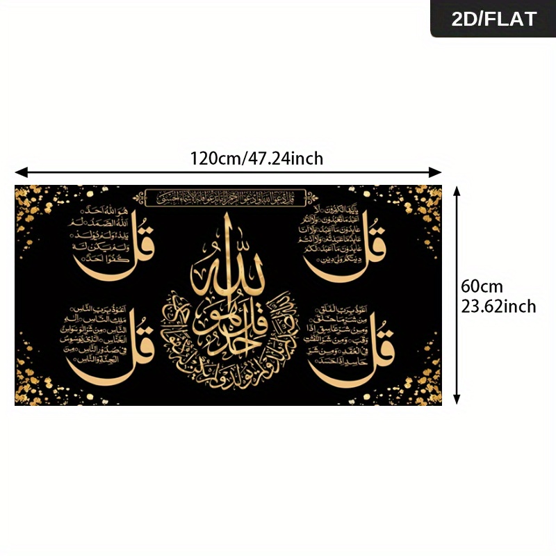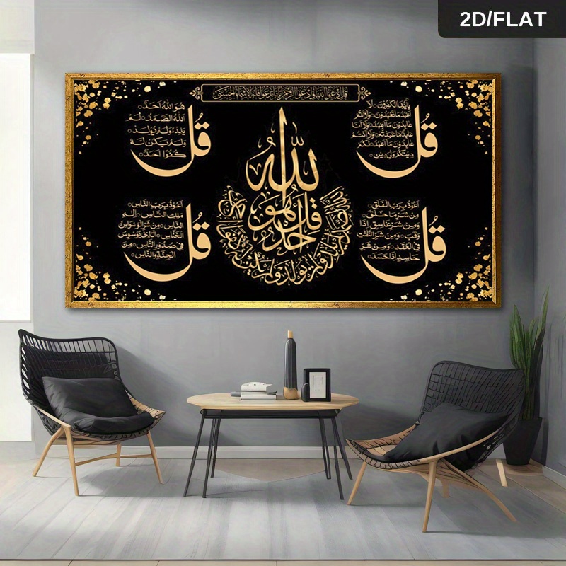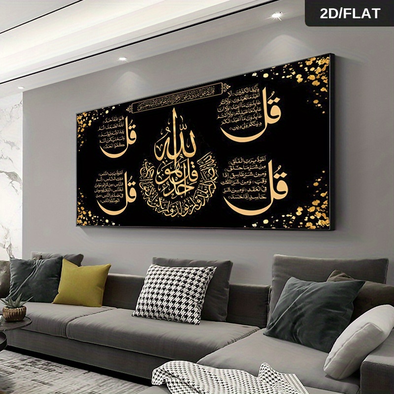Accueil›Décoration›Décoration murale›1pc Grande Calligraphie Arabe Moderne – Peinture sur Toile Noire et Script Islamique pour Salon – Œuvre d'Art en Langue Arabe, 23,62×47,24 pouces/60×120 cm, 2D Plat