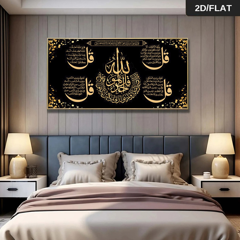 1pc Grande Calligraphie Arabe Moderne – Peinture sur Toile Noire et Script Islamique pour Salon – Œuvre d'Art en Langue Arabe, 23,62×47,24 pouces/60×120 cm, 2D Plat