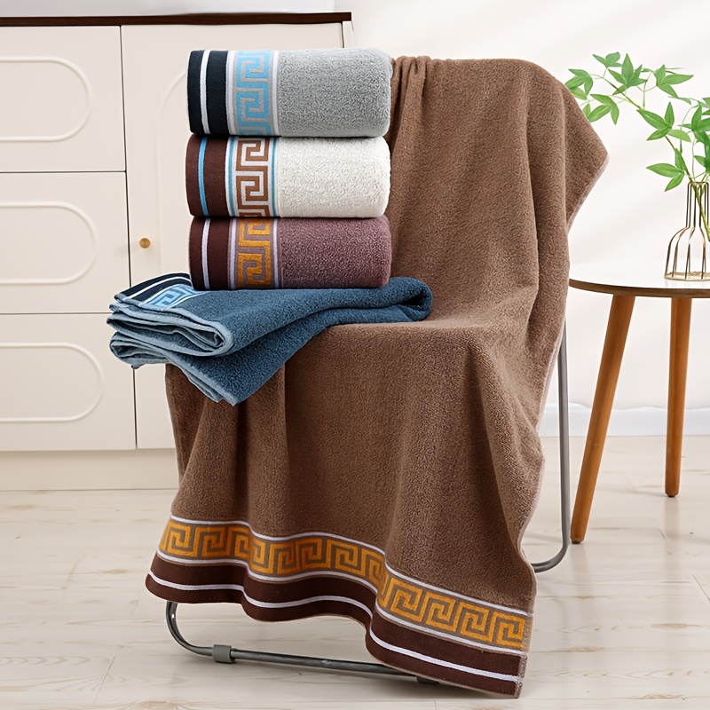Accueil›Autre›2 pièces Serviette de Bain en Coton Pur 70x140cm, Motif Géométrique de la Grande Muraille, Ultra-Douce et Haute Absorbance, Essentielle pour la Salle de Bain ou les Voyages, Fournitures pour les Fêtes de Noël, Serviette de Bain Décorative, Plusieurs Coule