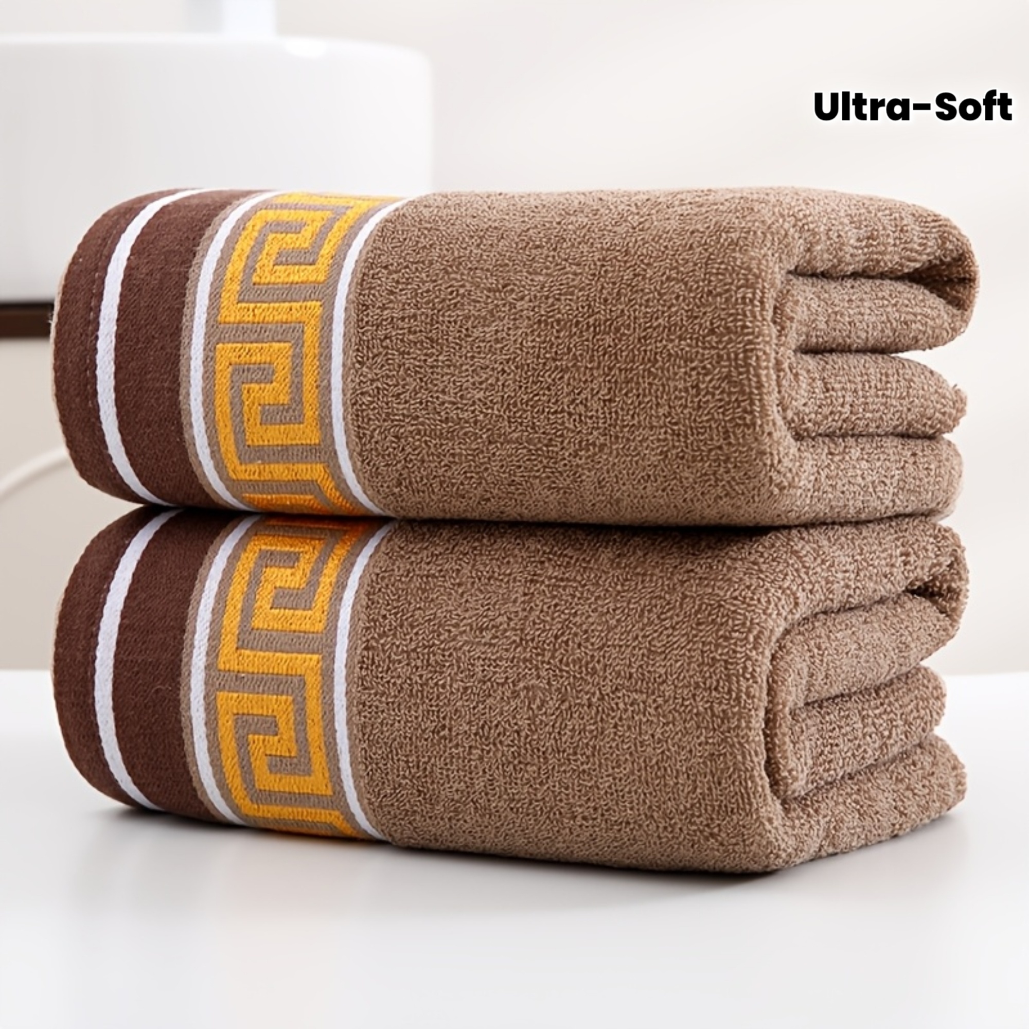 2 pièces Serviette de Bain en Coton Pur 70x140cm, Motif Géométrique de la Grande Muraille, Ultra-Douce et Haute Absorbance, Essentielle pour la Salle de Bain ou les Voyages, Fournitures pour les Fêtes de Noël, Serviette de Bain Décorative, Plusieurs Coule