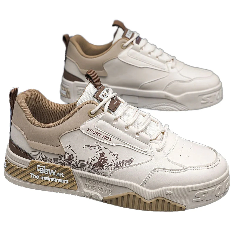 Chaussures de Sport Rétro pour Homme Été Décontractées Blanches à Lacets Amorties Tendance Originales Rehaussantes