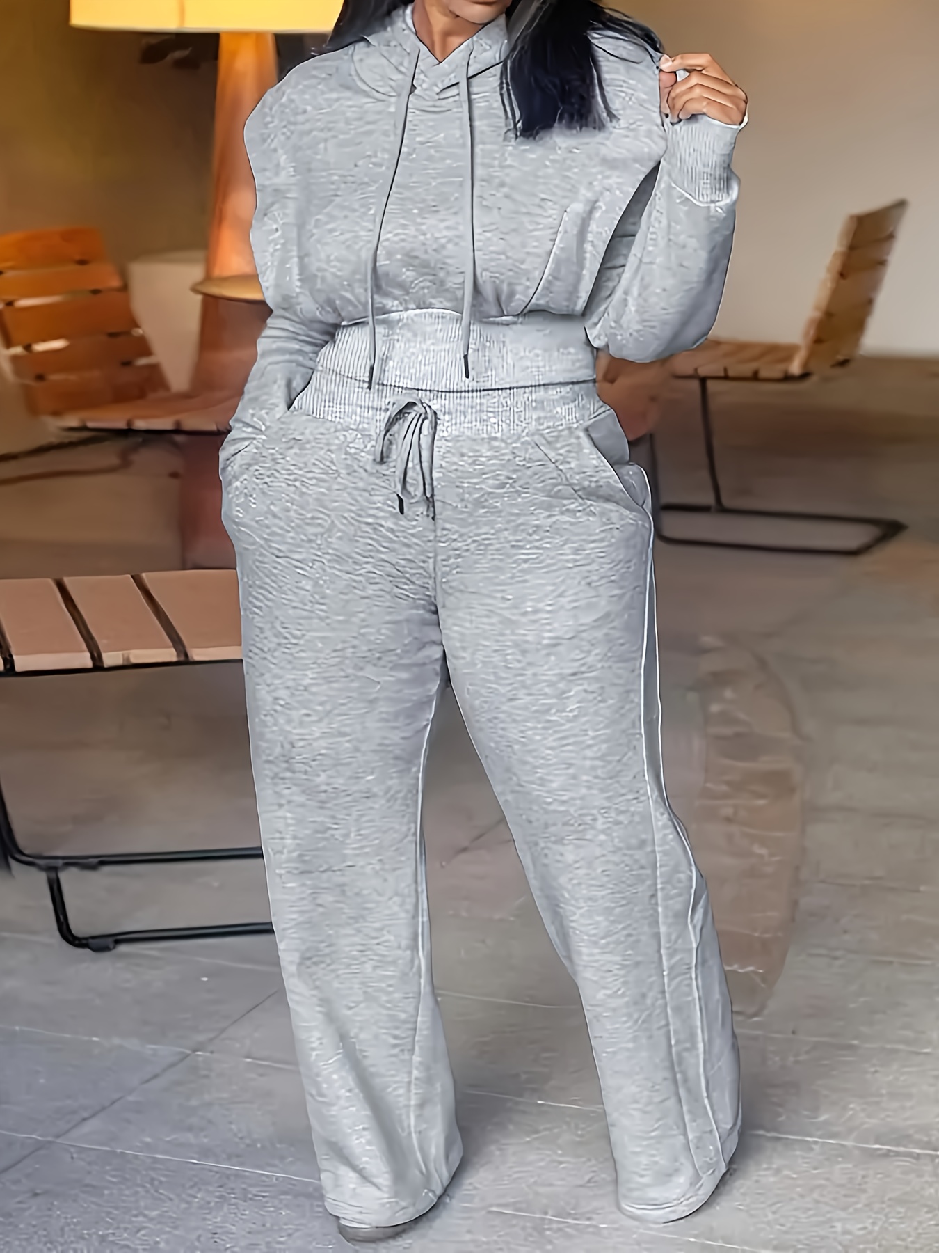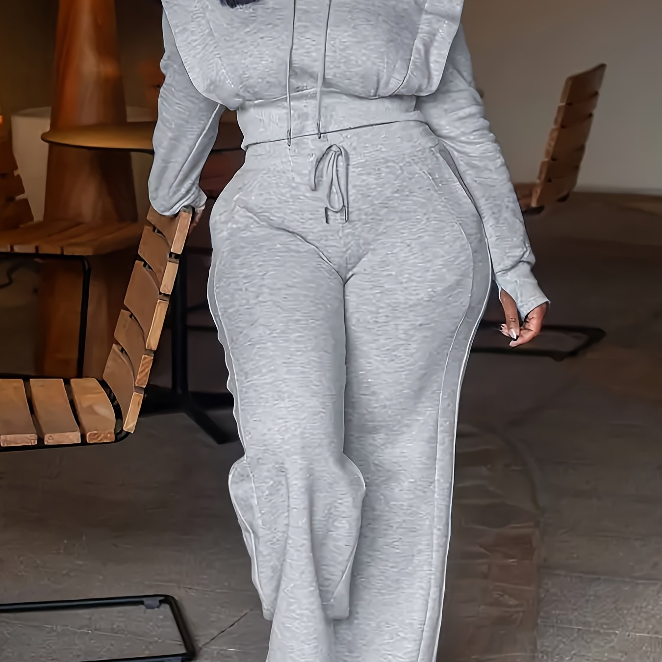Combinaison décontractée grise pour femmes avec poches – Manches longues, jambes larges, taille à cordon, confort toutes saisons, tenue décontractée | Combinaison à jambes larges | Taille à cordon, combinaison pour femmes