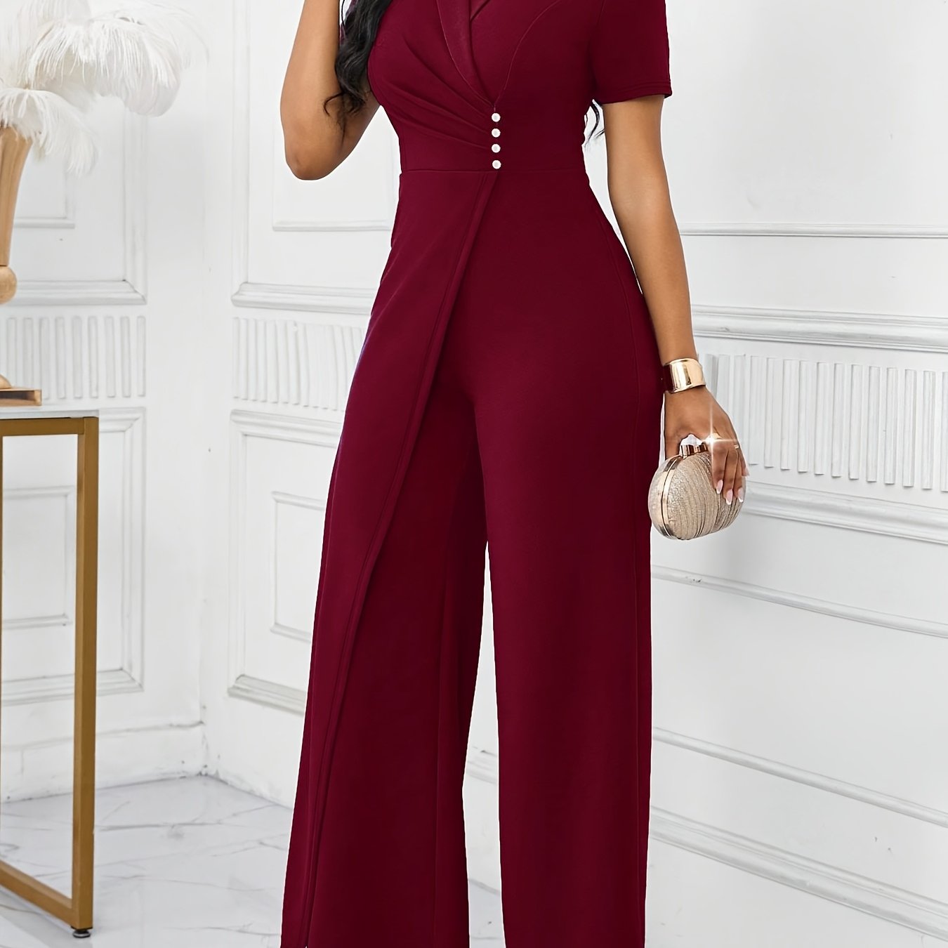 Combinaison Femme Slim Automne/Hiver à Encolure Croisée, Unie, Ceinture Décorative à Boutonnage Simple, Longueur Longue – Élégante et Polyvalente, Idéale pour Soirées et Tenue Quotidienne