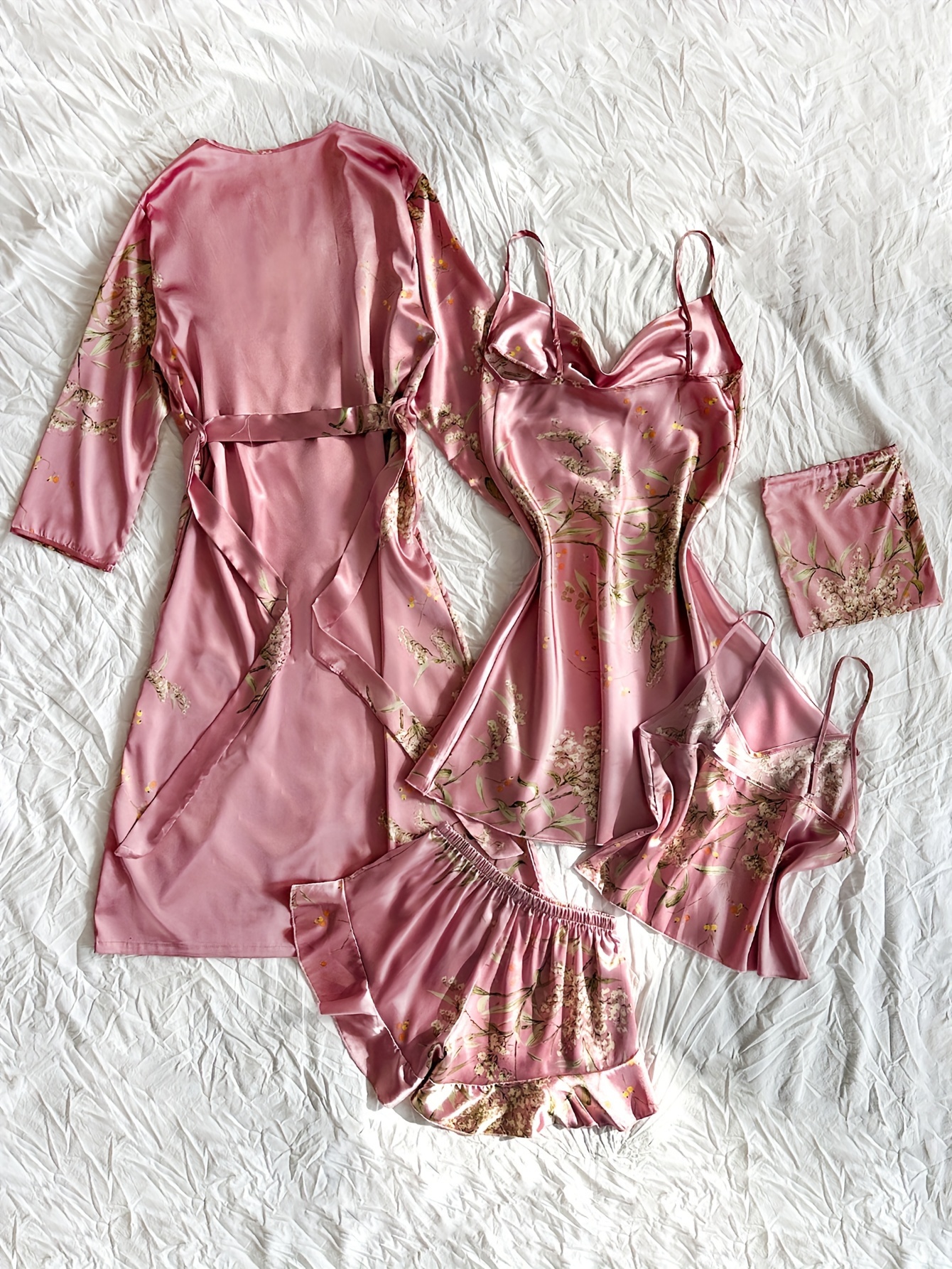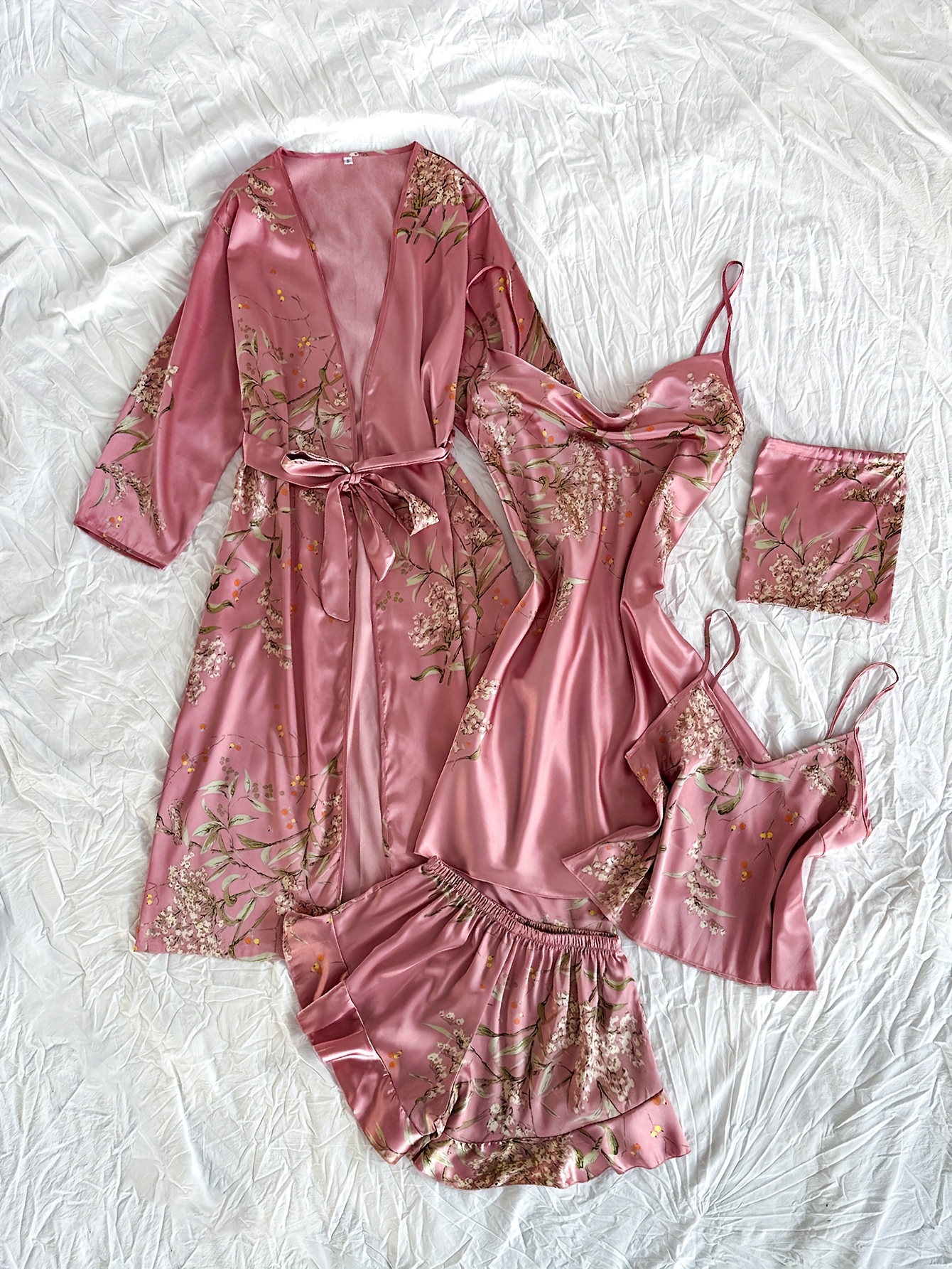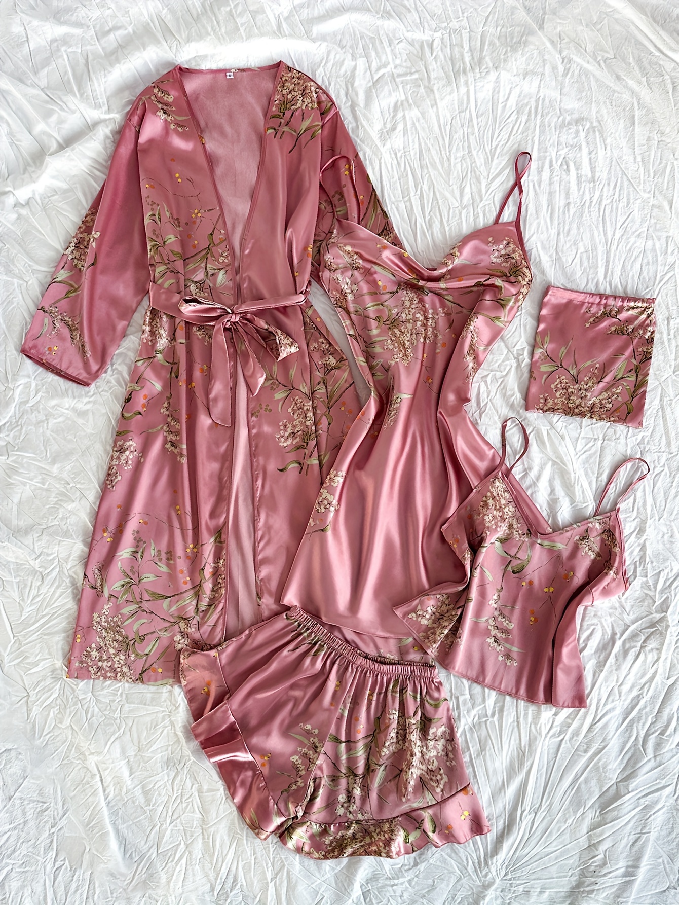 Ensemble de 5 pièces de nuit pour femmes – Kimono avec robe, pyjama assorti, lavable en machine, robe de nuit pour toutes saisons, système non-pyjama