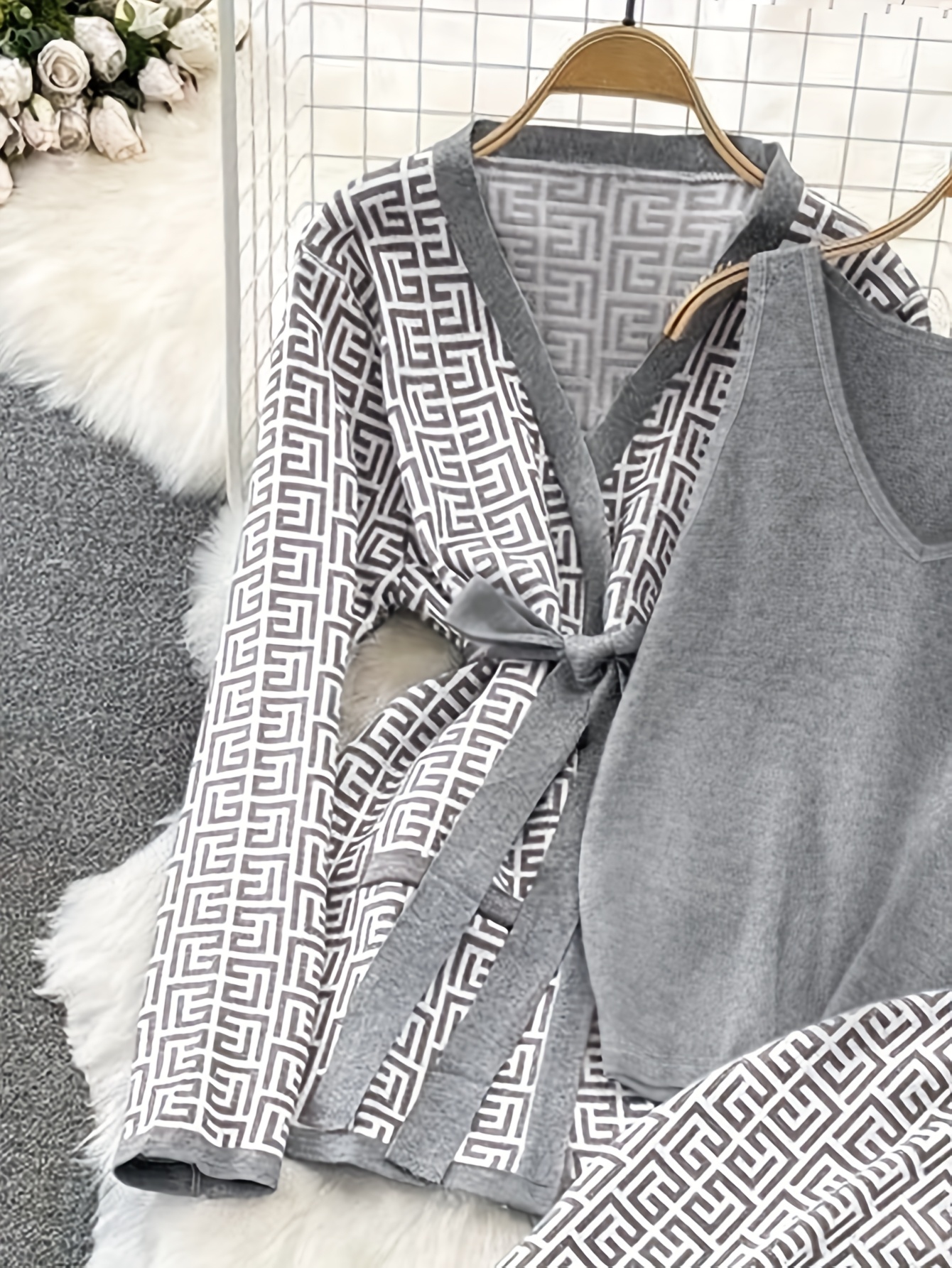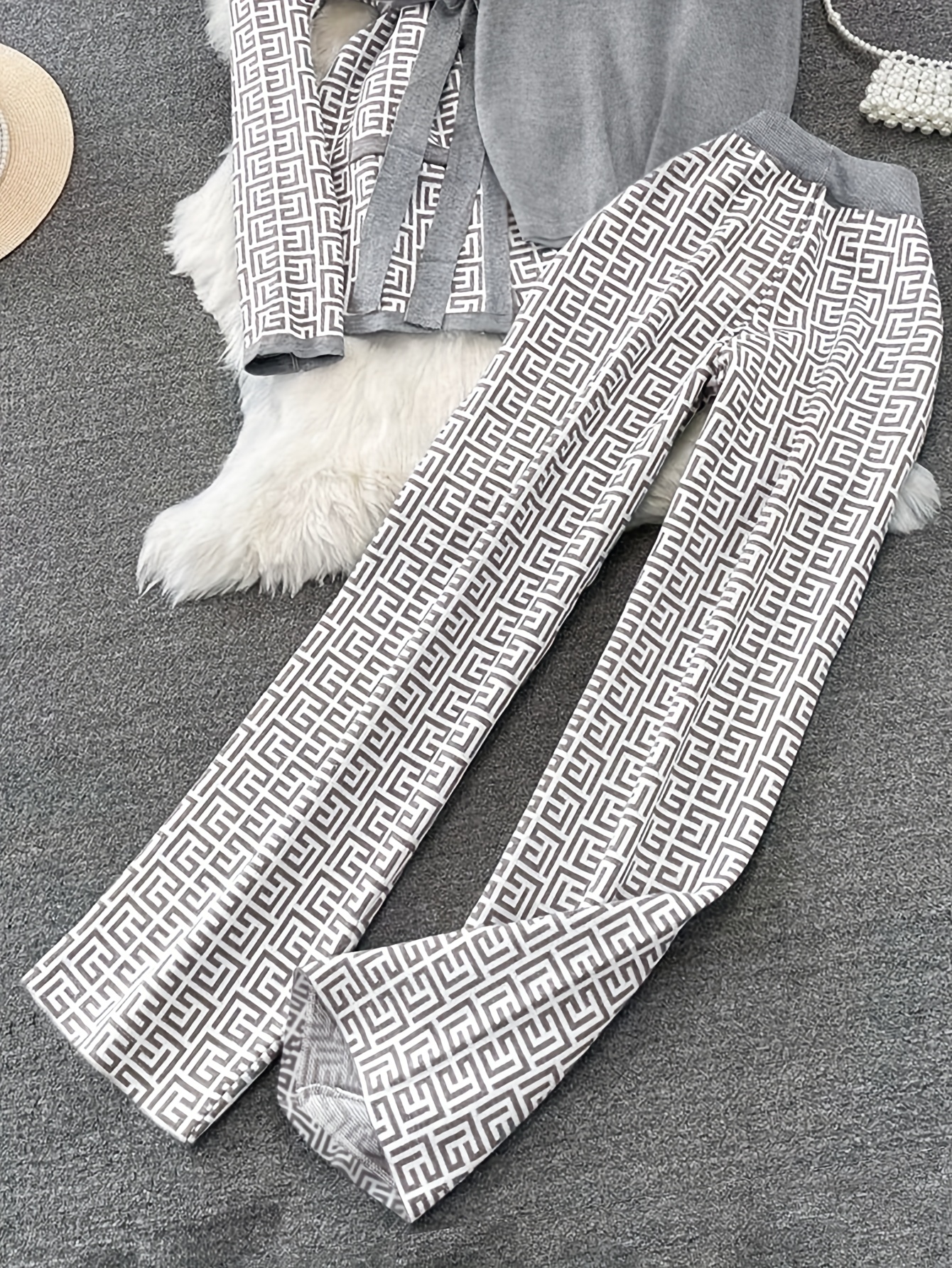 Ensemble vintage style français 3 pièces – Veste élégante col V, haut et pantalon large, lavable en machine, tenue toutes saisons pour le quotidien ou occasions habillées