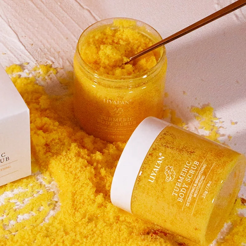 Gommage corporel éclaircissant pour le visage et le corps au curcuma, label privé, gommage corporel biologique à la vitamine C et au curcuma