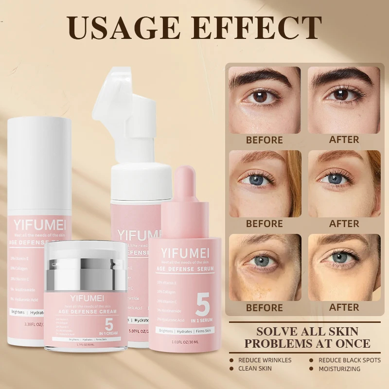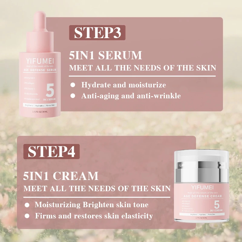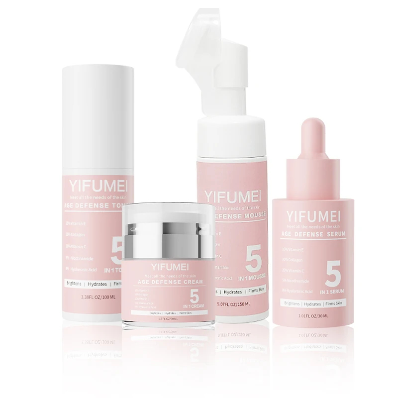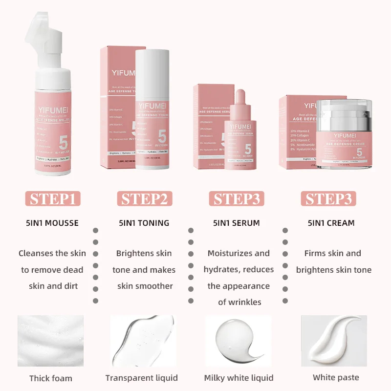 Kit de Soin de la Peau 5 en 1 Marque Blanche à la Vitamine C pour le Visage Anti-Âge Anti-Rides Raffermissant Hydratant Rajeunissant et Éclaircissant