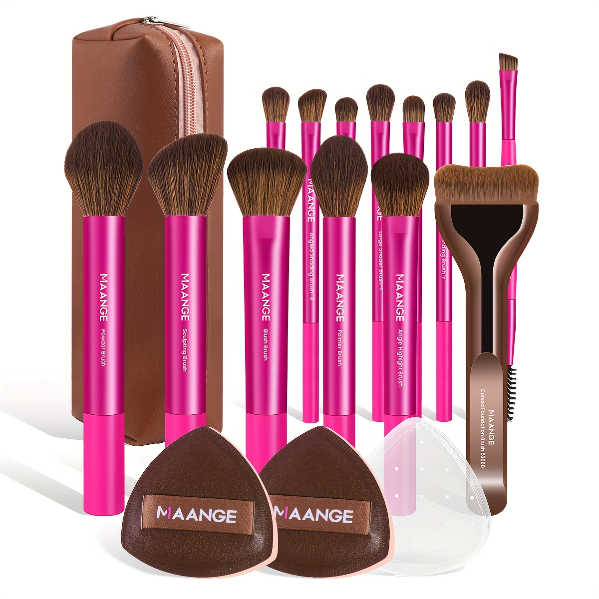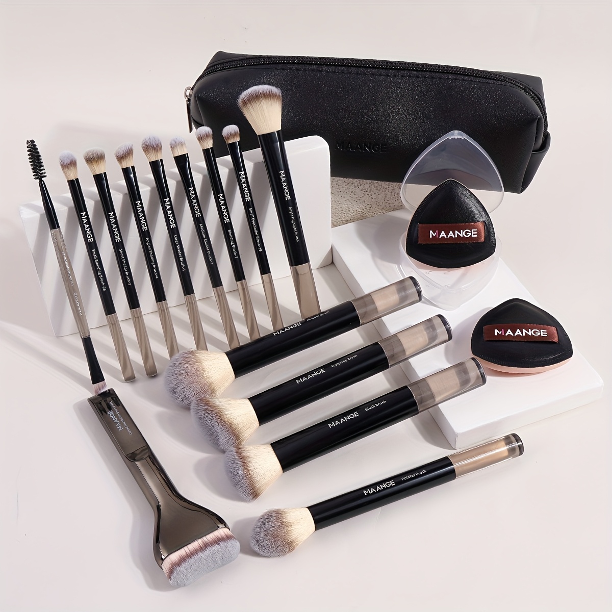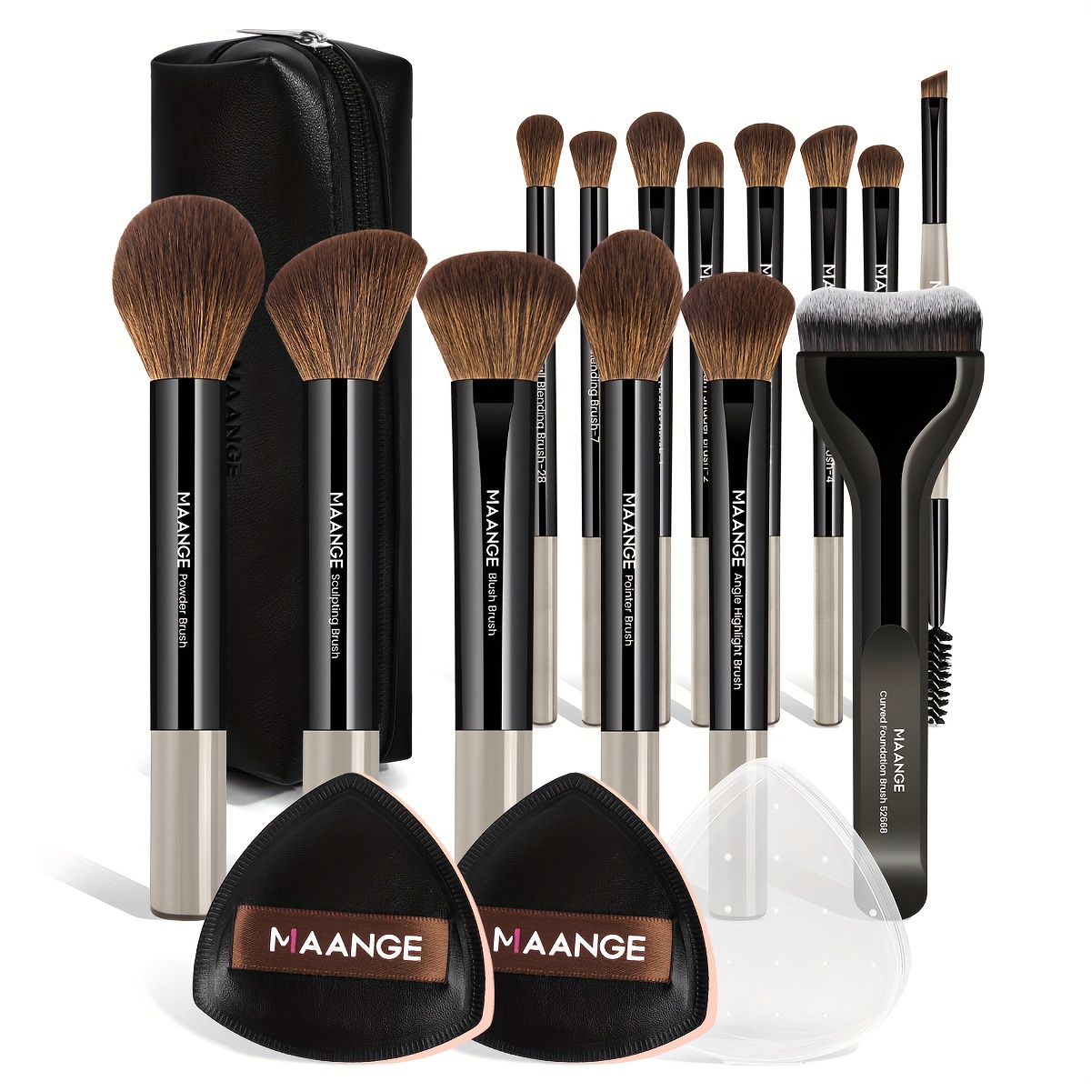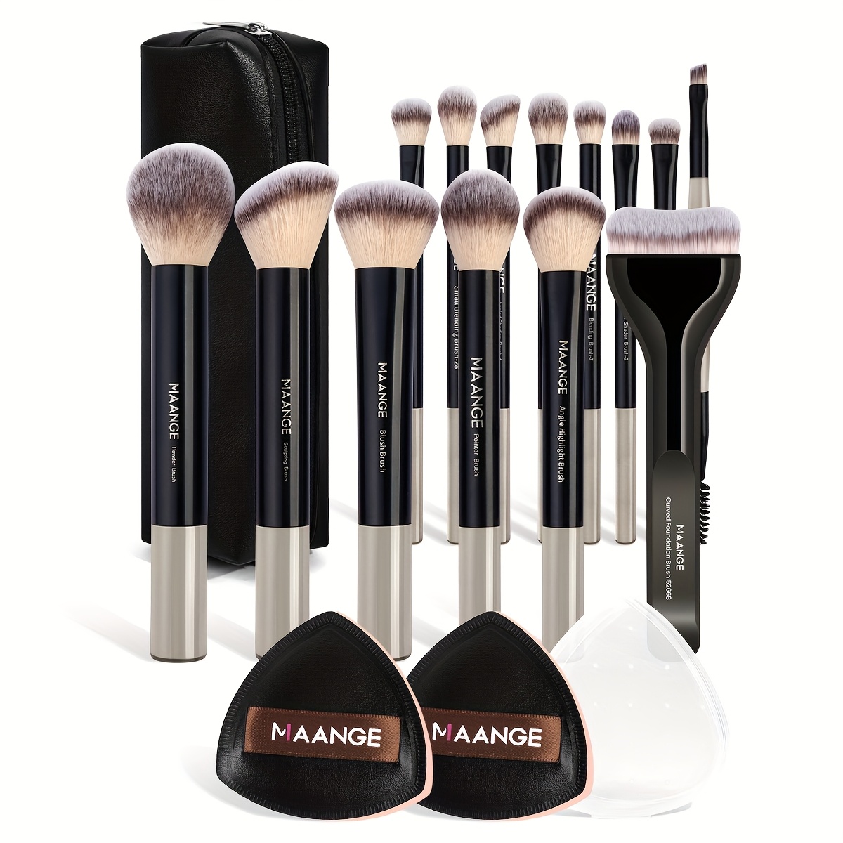 MAANGE Kit de Maquillage Professionnel 17 pièces – 14 Pinceaux à Maquillage, Sac de Maquillage, 2 Houppettes PU, Pinceau Fond de Teint, Pinceau Contour, Pinceau Poudre, Pinceau Fard à Paupières, Pinceau Sourcils – Ensemble de Voyage Facile à Transporter –