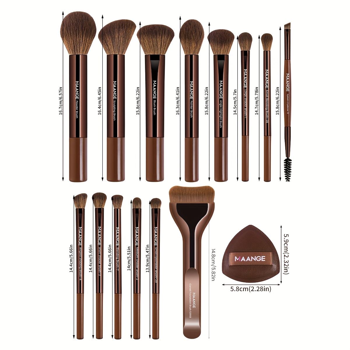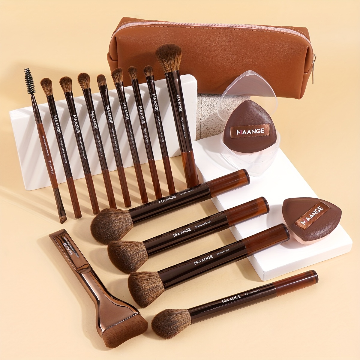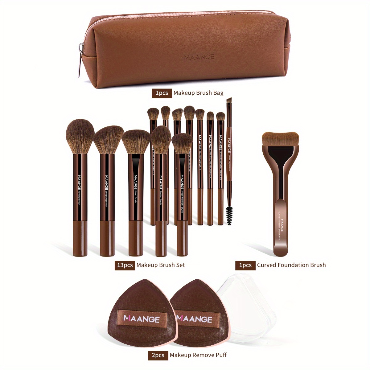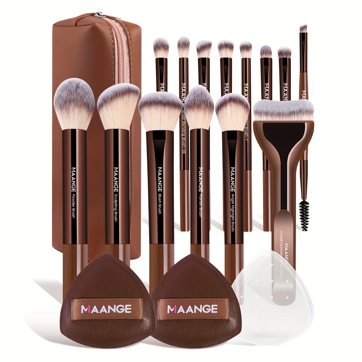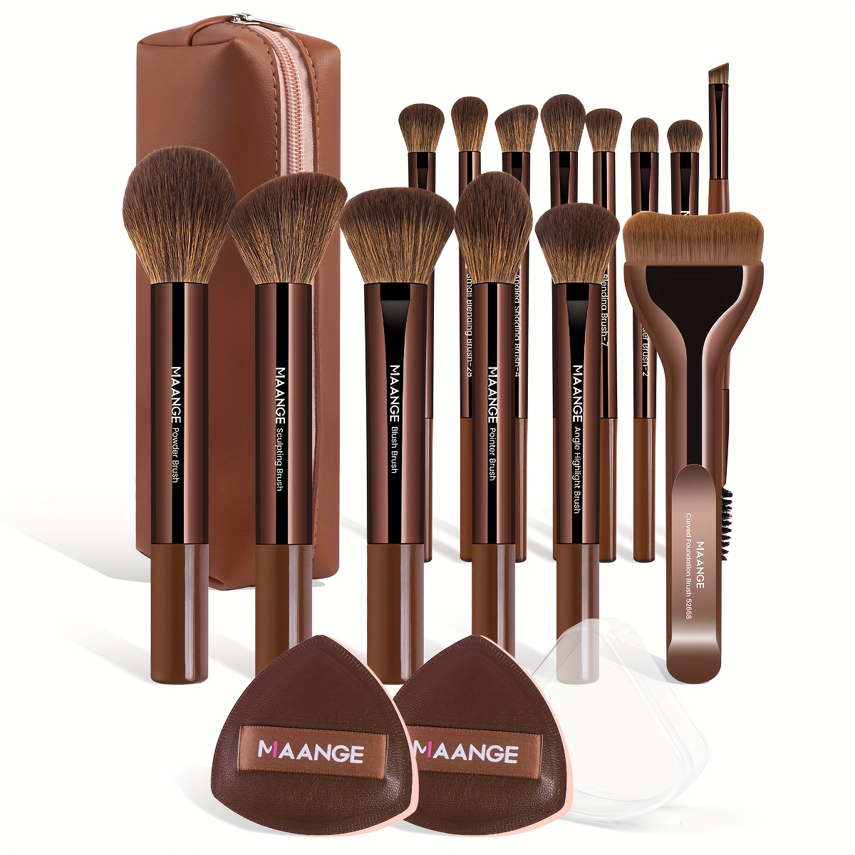 MAANGE Kit de Maquillage Professionnel 17 pièces – 14 Pinceaux à Maquillage, Sac de Maquillage, 2 Houppettes PU, Pinceau Fond de Teint, Pinceau Contour, Pinceau Poudre, Pinceau Fard à Paupières, Pinceau Sourcils – Ensemble de Voyage Facile à Transporter –