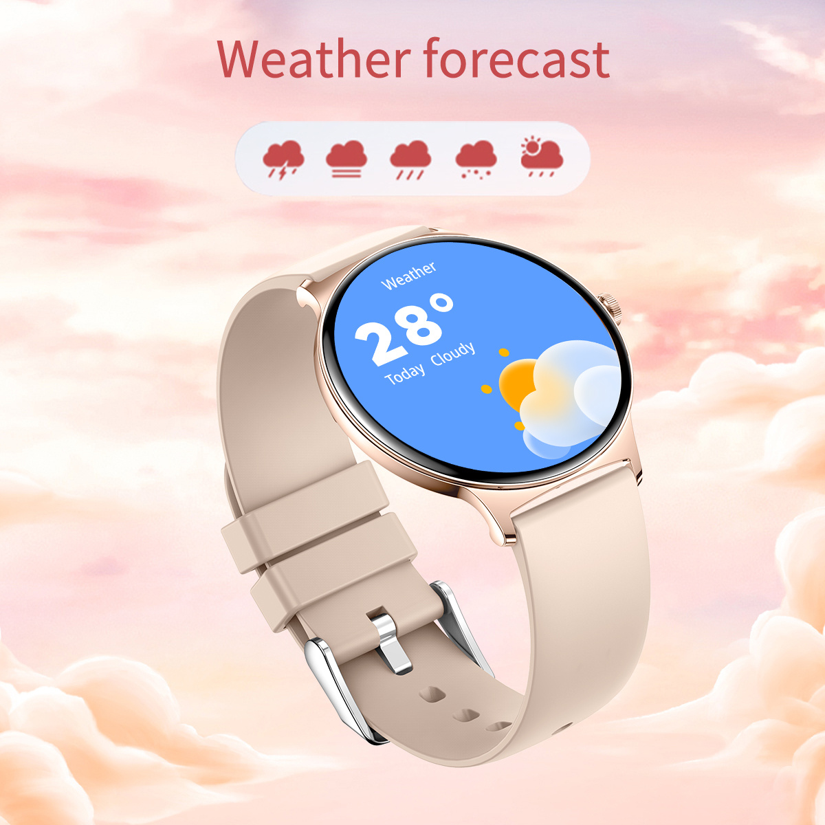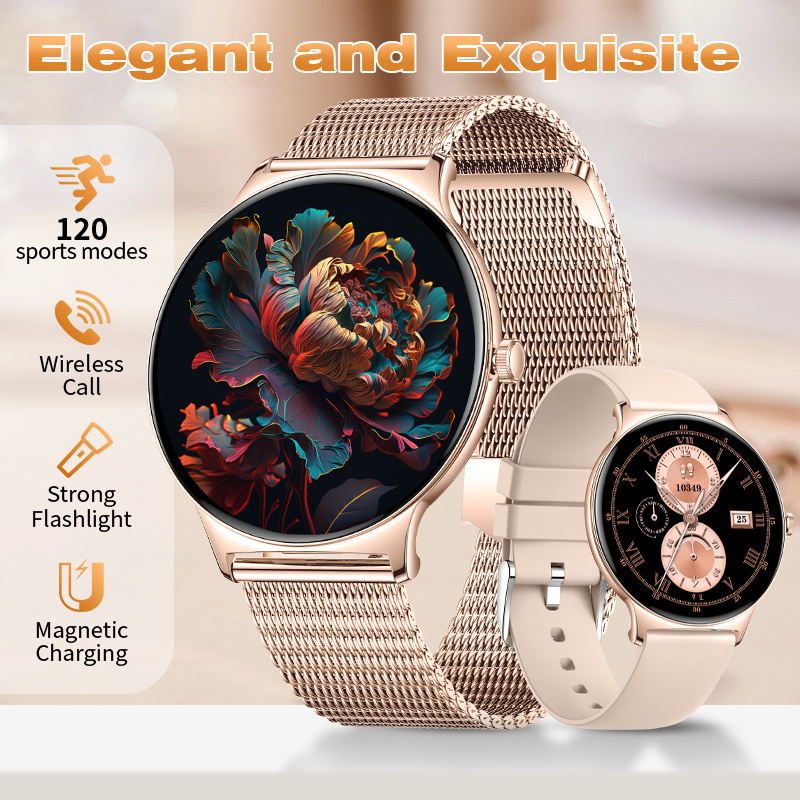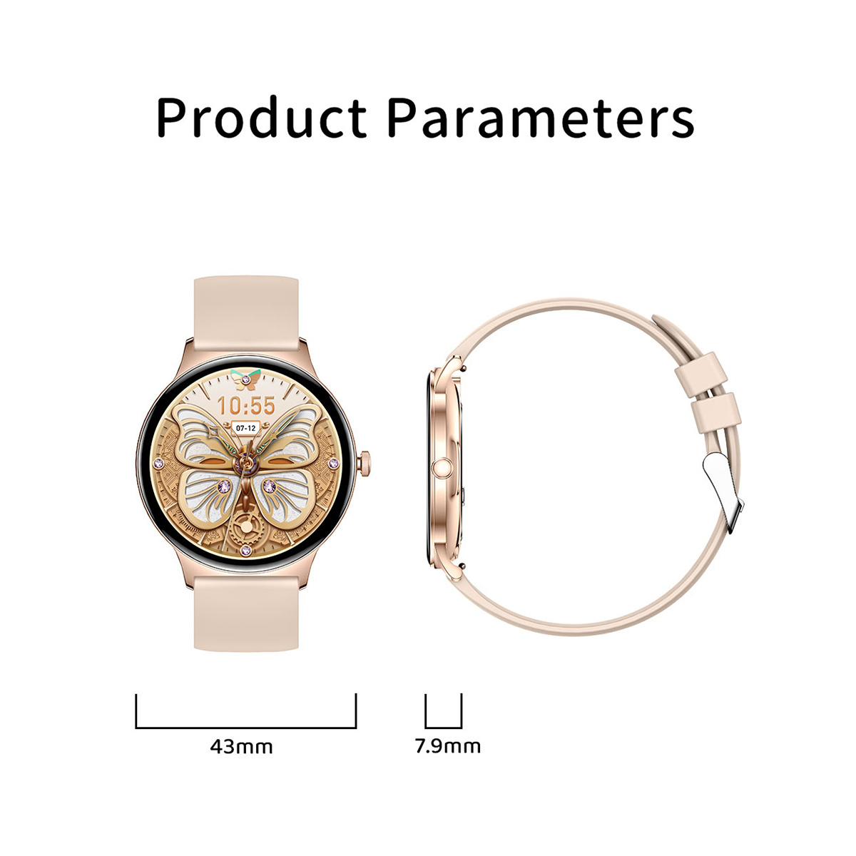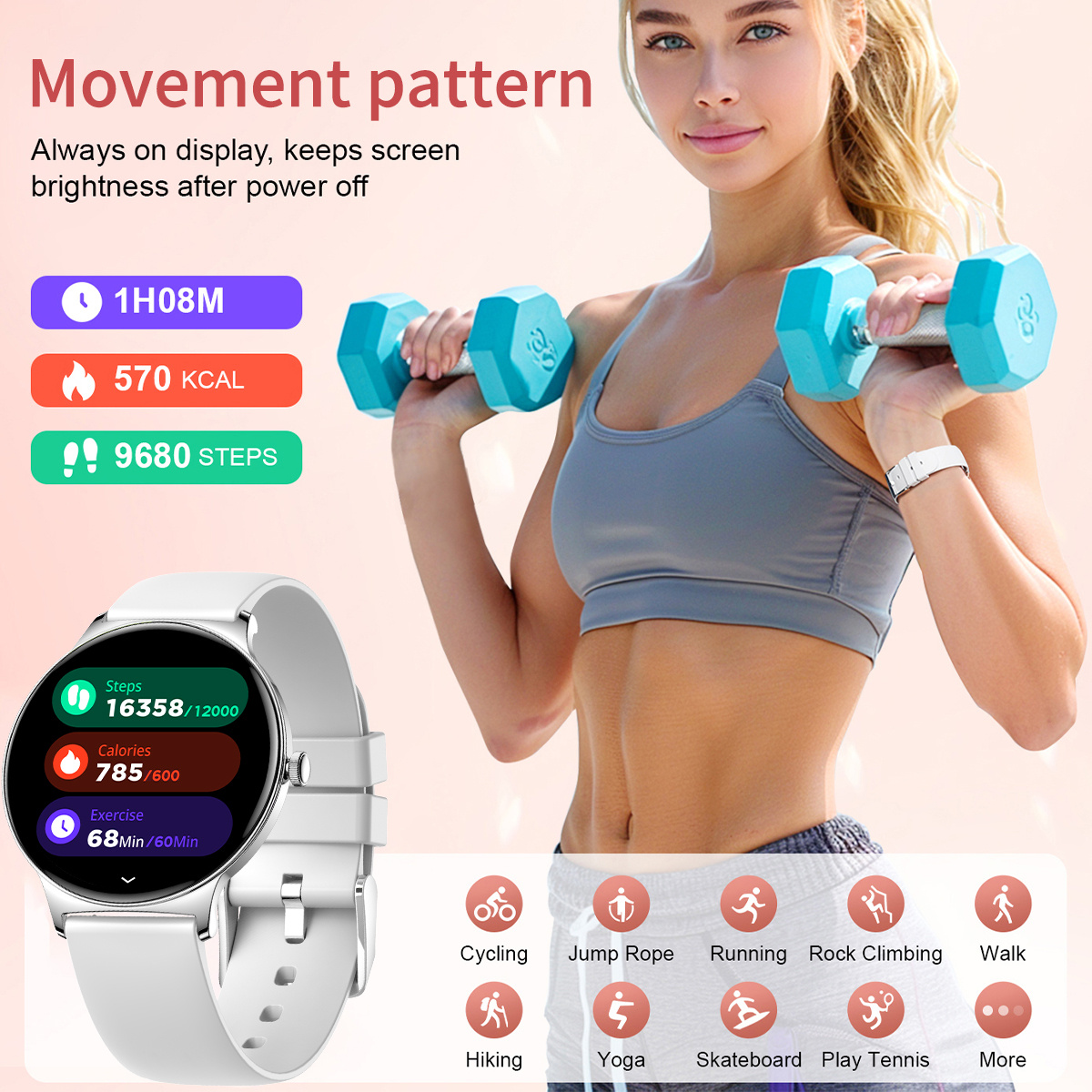 Montre connectée ultra-fine pour femme avec appel sans fil, écran tactile AMOLED 1,43&quote;, affichage toujours actif, podomètre, suivi de la condition physique, plus de 100 modes sportifs, rappel de message, moniteur de sommeil, suivi du cycle, compatible And