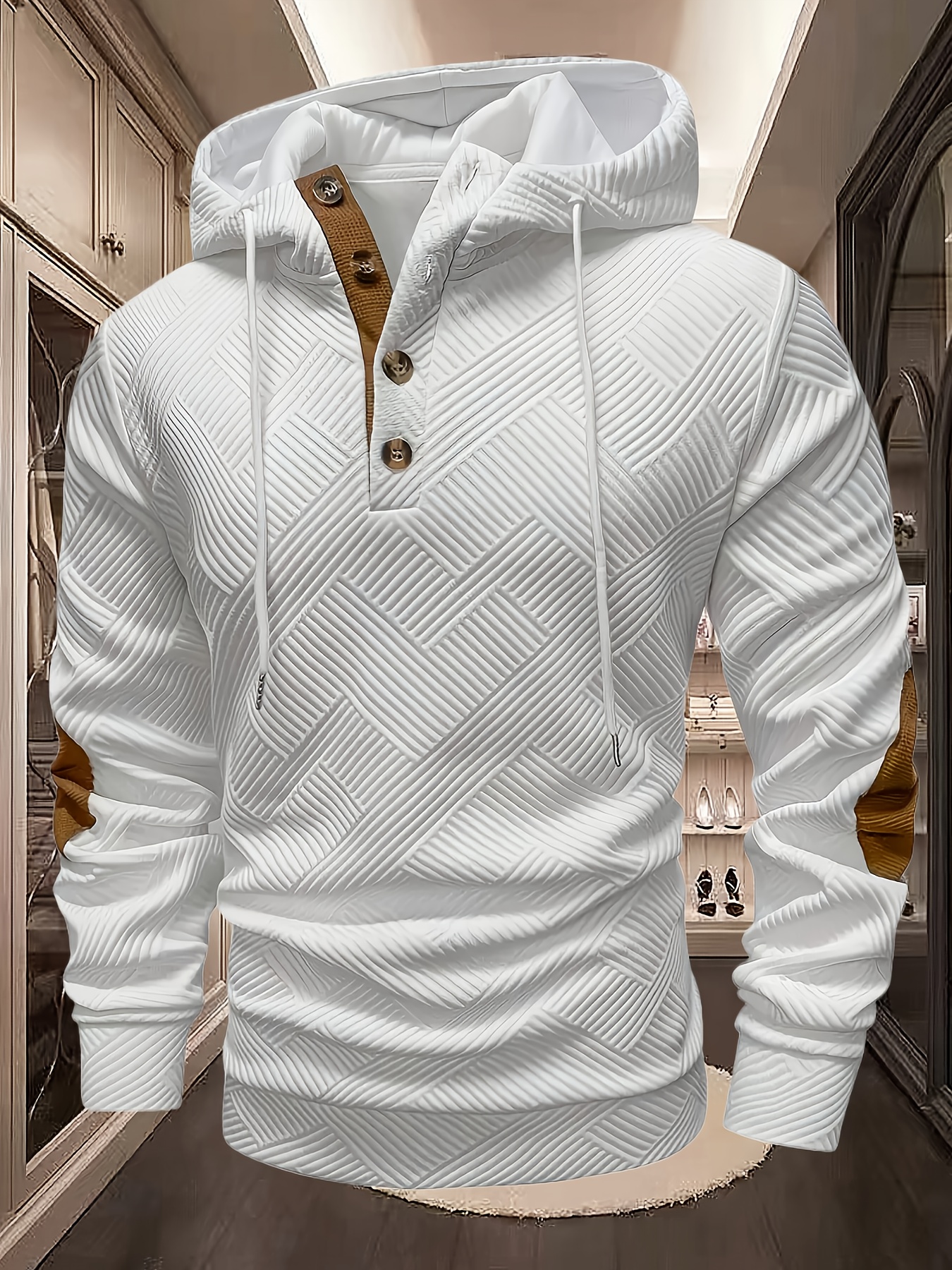 Nouveau Sweat à Capuche Automne/Hiver, Veste à Capuche Jacquard Lourd à Motif Géométrique Décontracté pour Hommes Européens et Américains