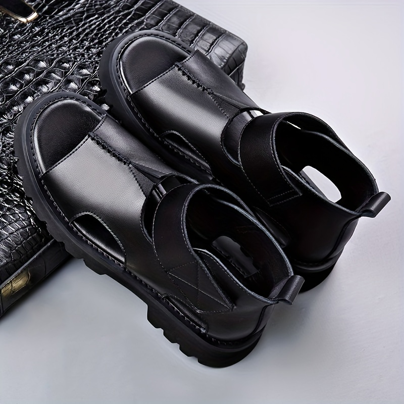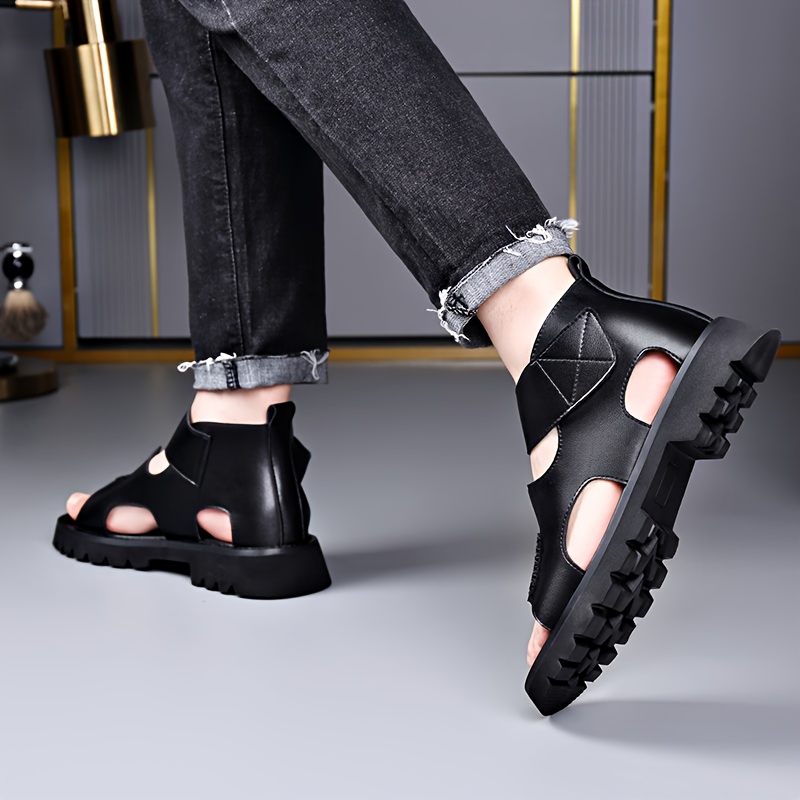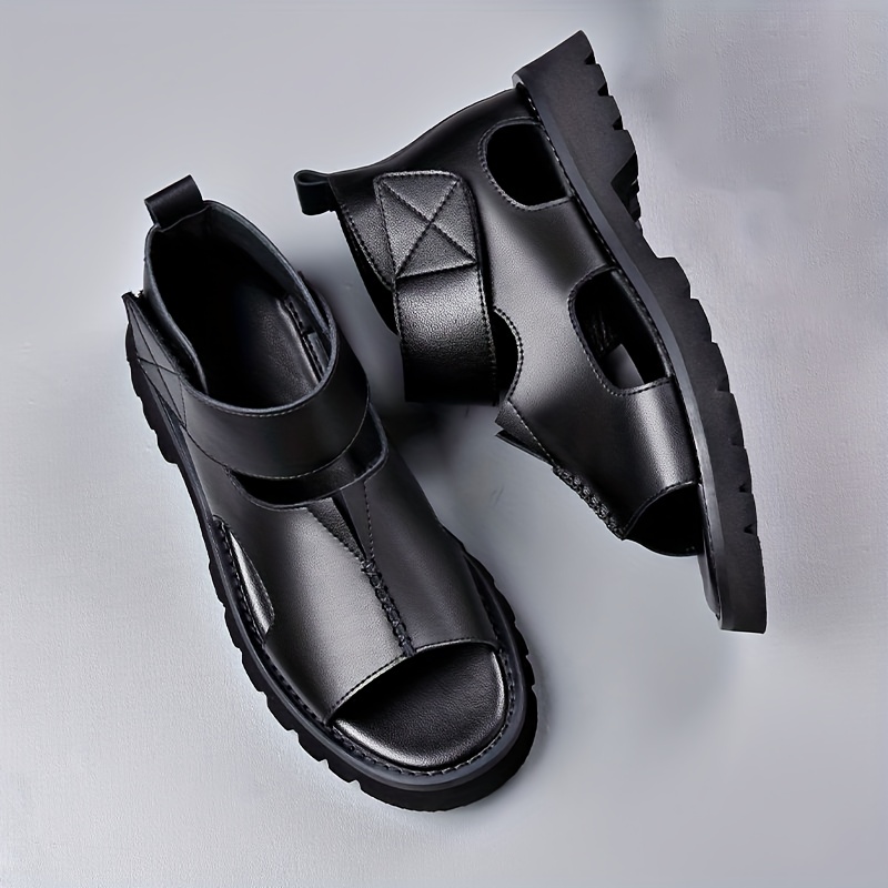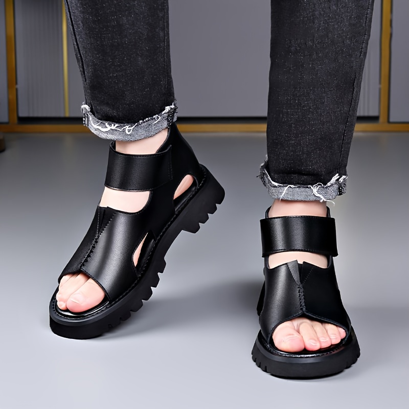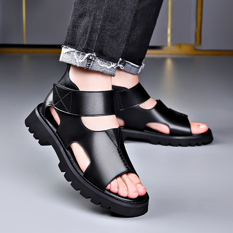 Nouvelles sandales d'été pour hommes en noir, chaussures décontractées polyvalentes et élégantes pour jeunes et personnes âgées, disponibles en tailles plus grandes, légères et respirantes, parfaites pour les vêtements d'extérieur à la mode.