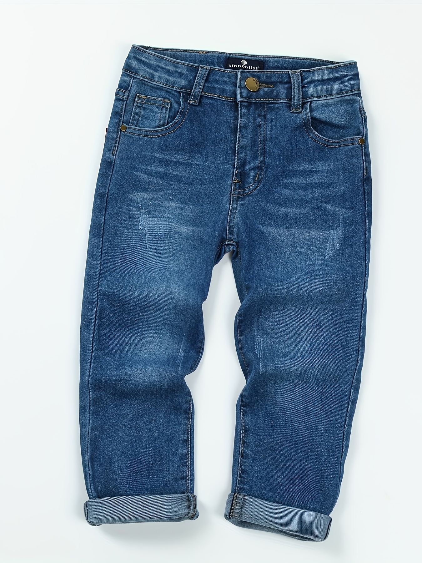 Accueil›Habillement›Pantalon en jean, Jeans slim-fit simples pour garçons, Jeans décontractés et élégants pour l'enfance moyenne, Mélange avec poches, Vêtement d'extérieur adapté au printemps, à l'automne et à l'hiver, Pantalons pour enfants.