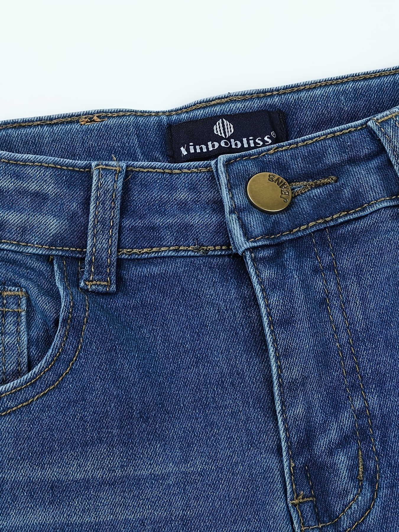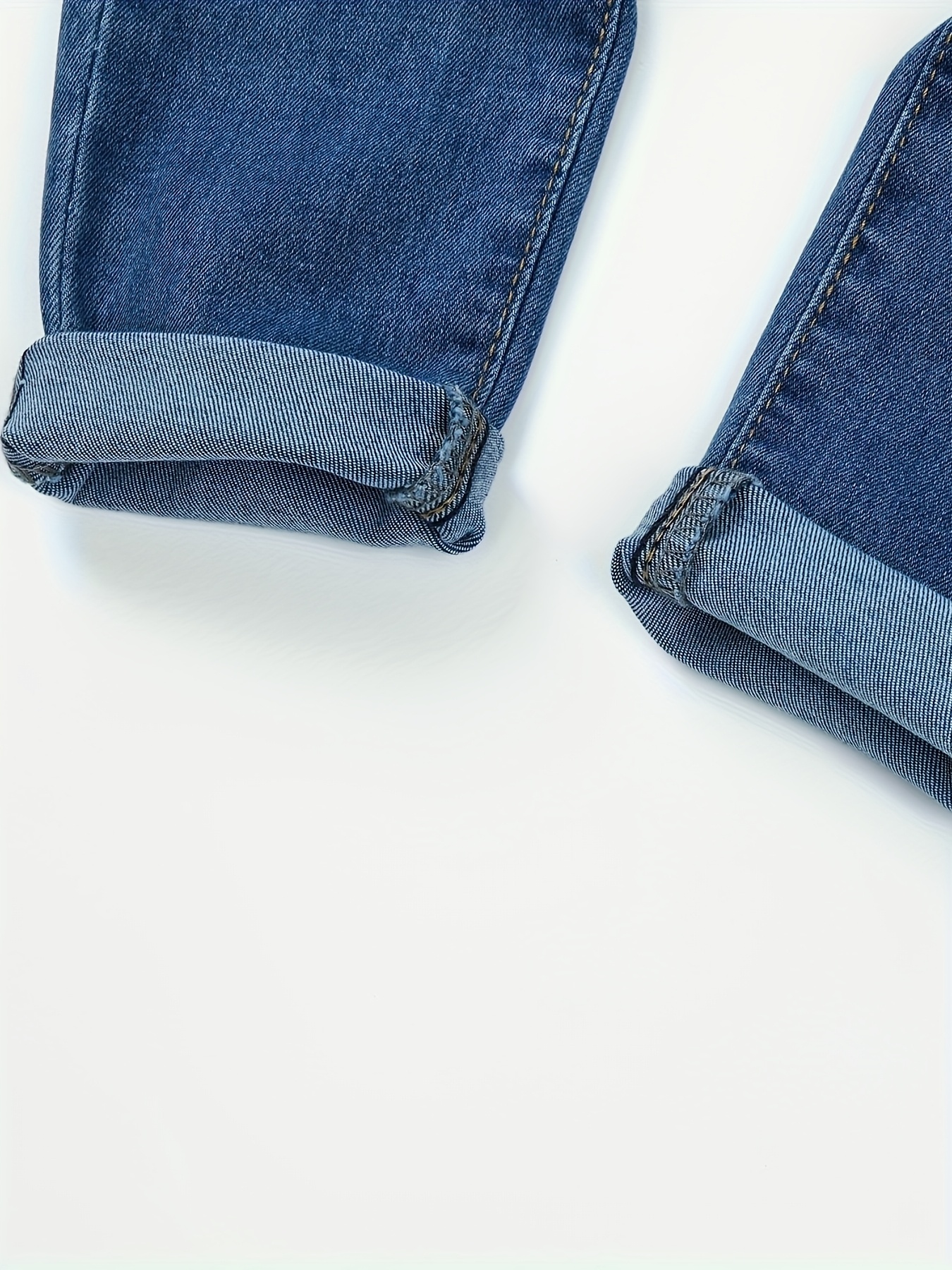 Pantalon en jean, Jeans slim-fit simples pour garçons, Jeans décontractés et élégants pour l'enfance moyenne, Mélange avec poches, Vêtement d'extérieur adapté au printemps, à l'automne et à l'hiver, Pantalons pour enfants.