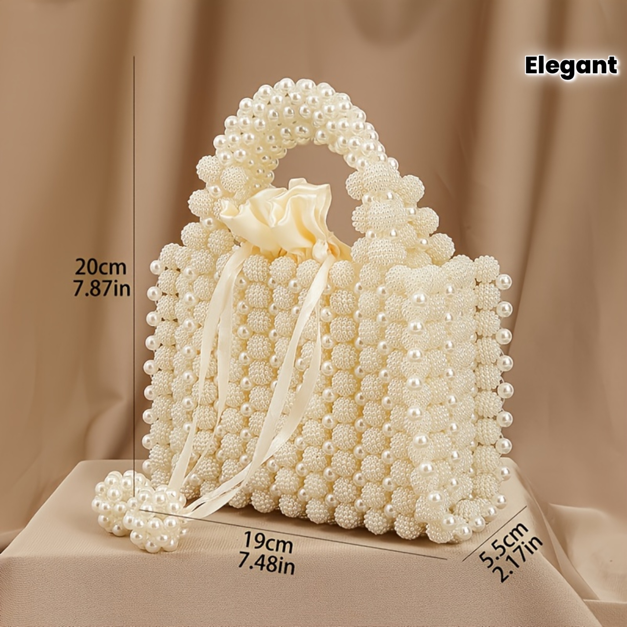 Pochette de Soirée Élégante en Perles Faites Main avec Poignée Rose – Sac à Main Chic pour Femmes pour Occasions Formelles, Blanc Crème, Sac