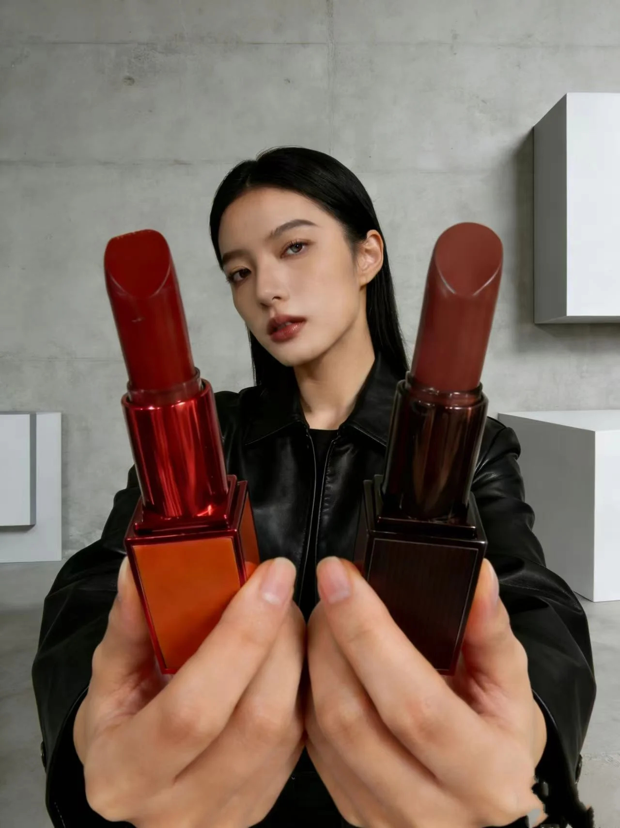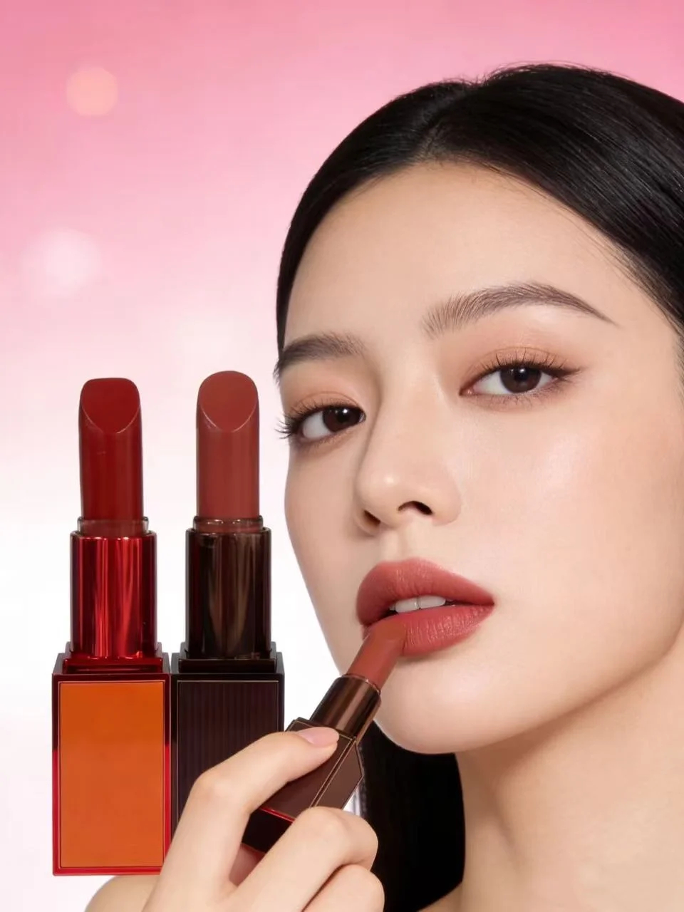 Rouge à lèvres bicolore de marque de luxe avec des ingrédients minéraux et végétaux de haute qualité qui durent longtemps sans se décolorer