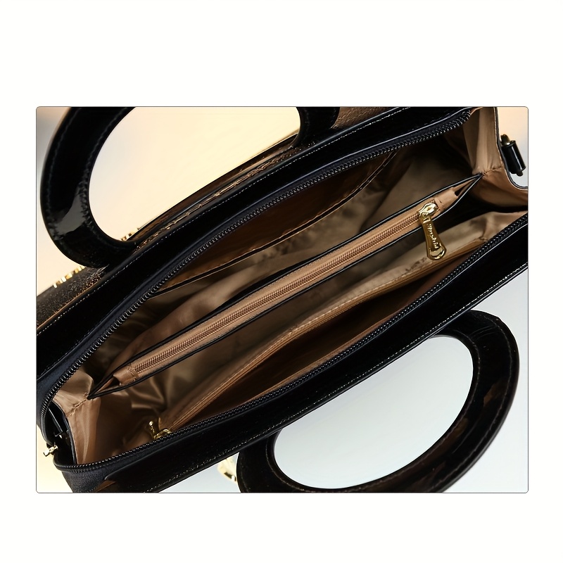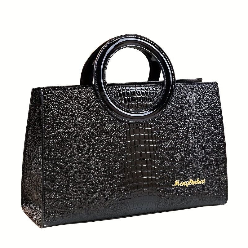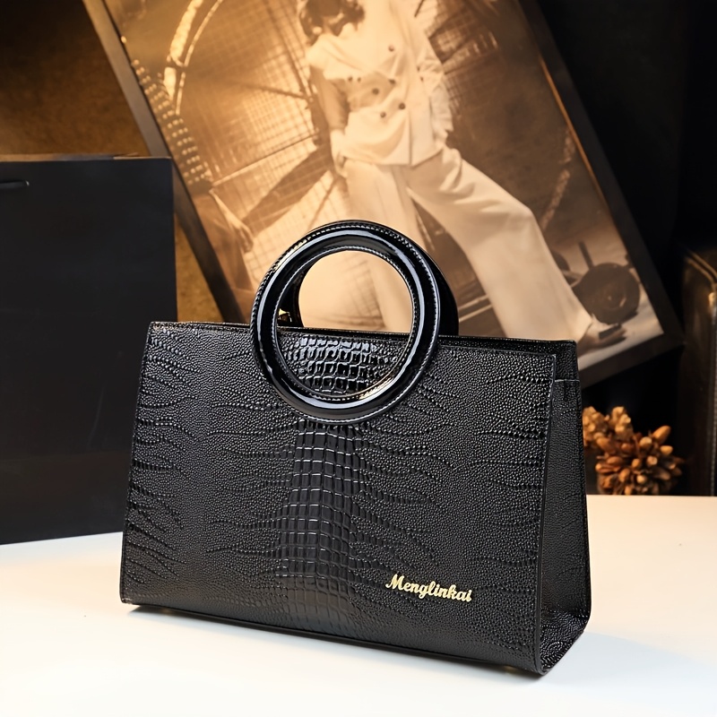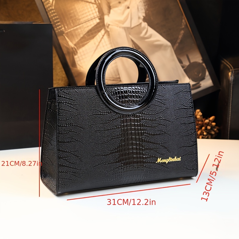 Sac à main élégant noir pour femme – Poche minimaliste chic avec fermeture éclair – Bandoulière réglable – Pour quotidien, bureau, événements formels – Sac femme durable et facile à nettoyer – Accessoire polyvalent – Texture crocodile – Look sophistiqué –