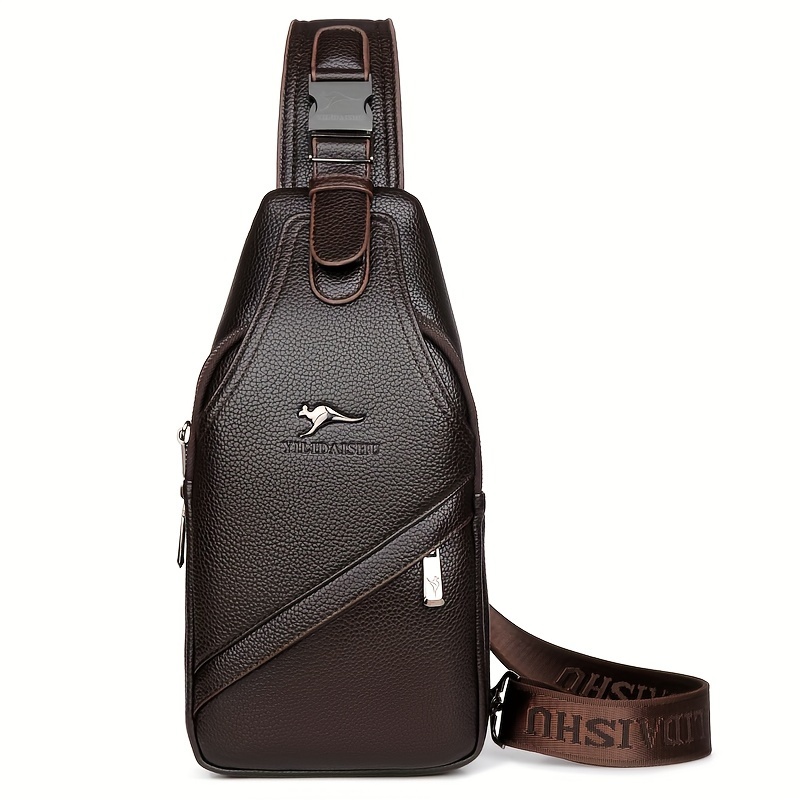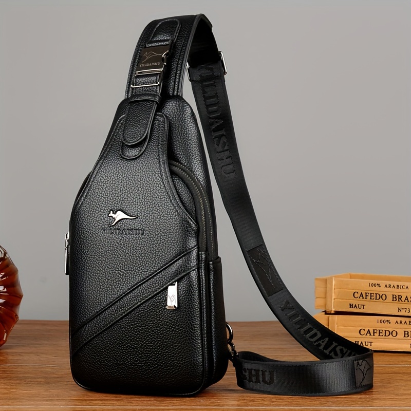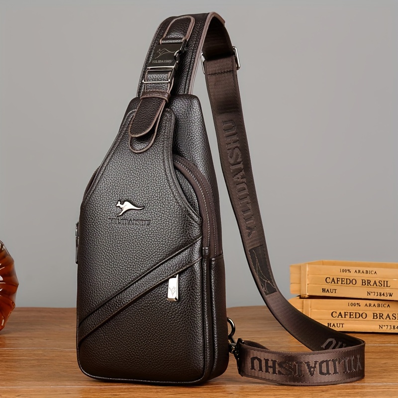 Accueil›Autre›[Sac de Voyage Essentiel] Sac Bandoulière en Cuir PU pour Hommes – Grande Capacité, Sac de Poitrine à Compartiments Multiples avec Sangle Ajustable & Fermeture Éclair, Style Décontracté pour les Déplacements Quotidiens
