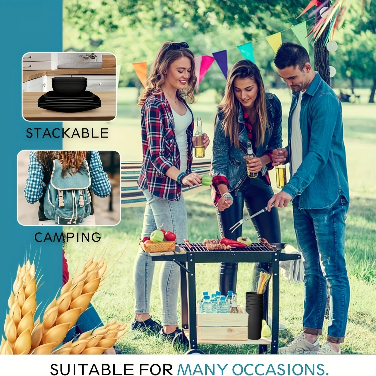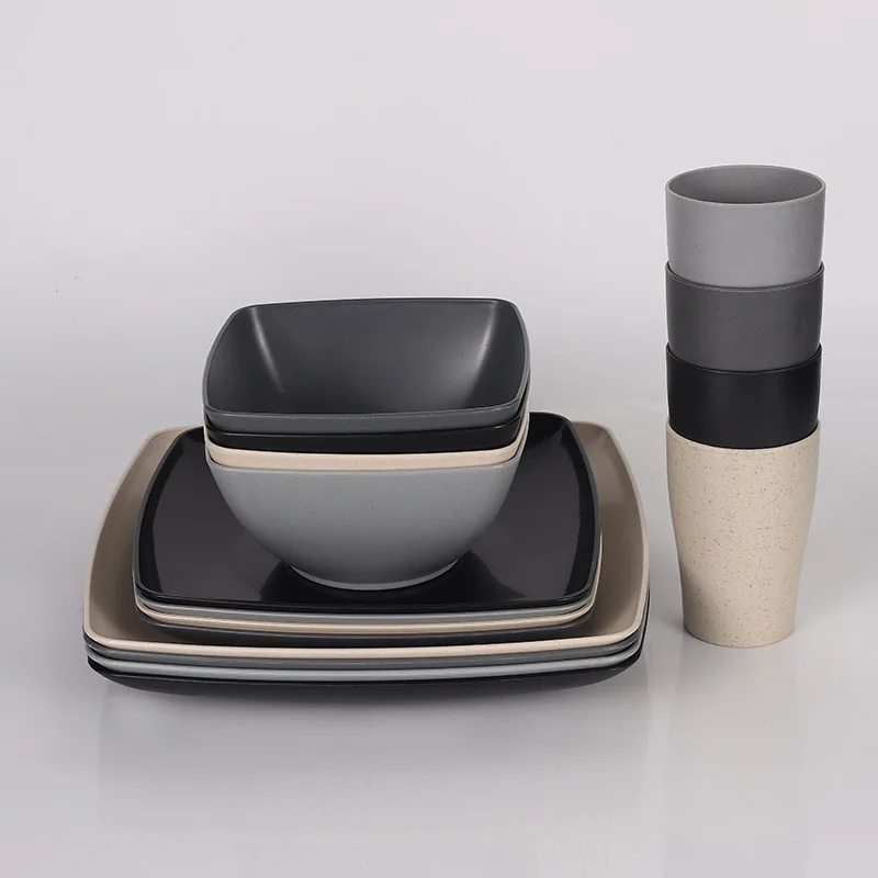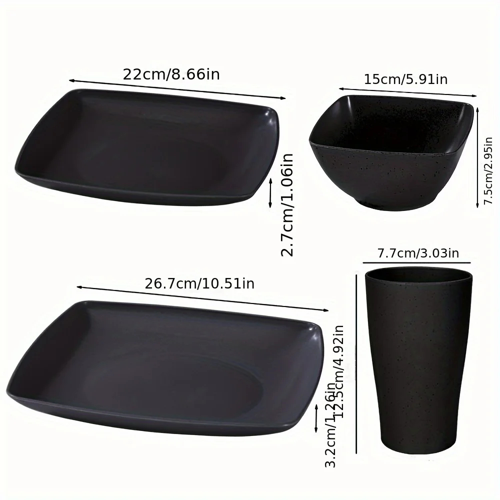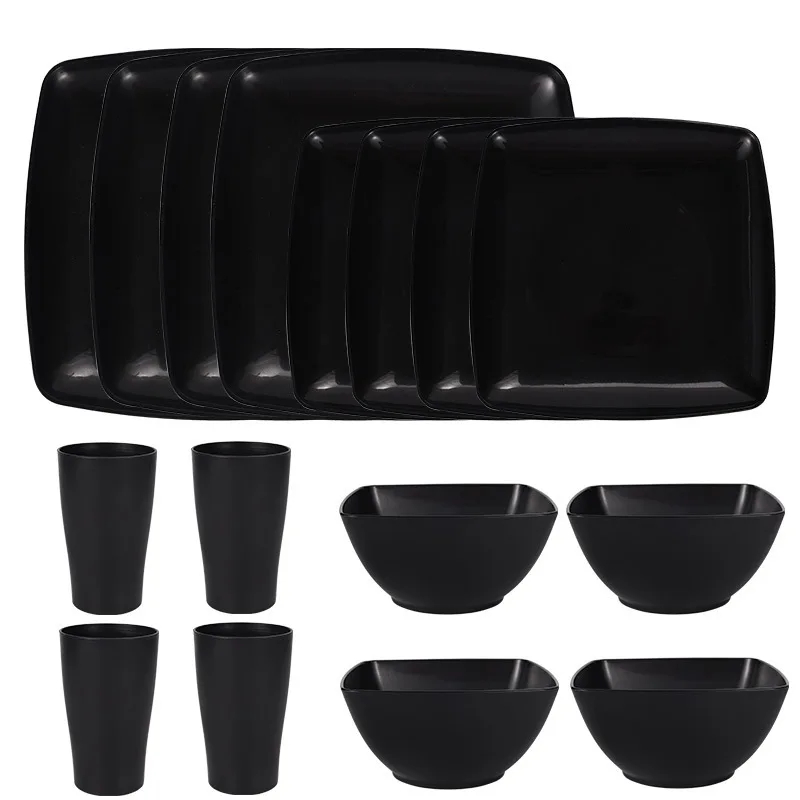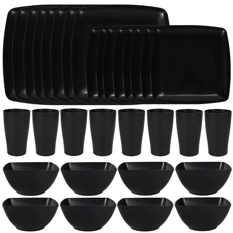 Service de vaisselle carré en plastique, 16/32 pièces, lavable au lave-vaisselle, au micro-ondes, peu encombrant, comprend des assiettes à dîner, bols à salade et à collation