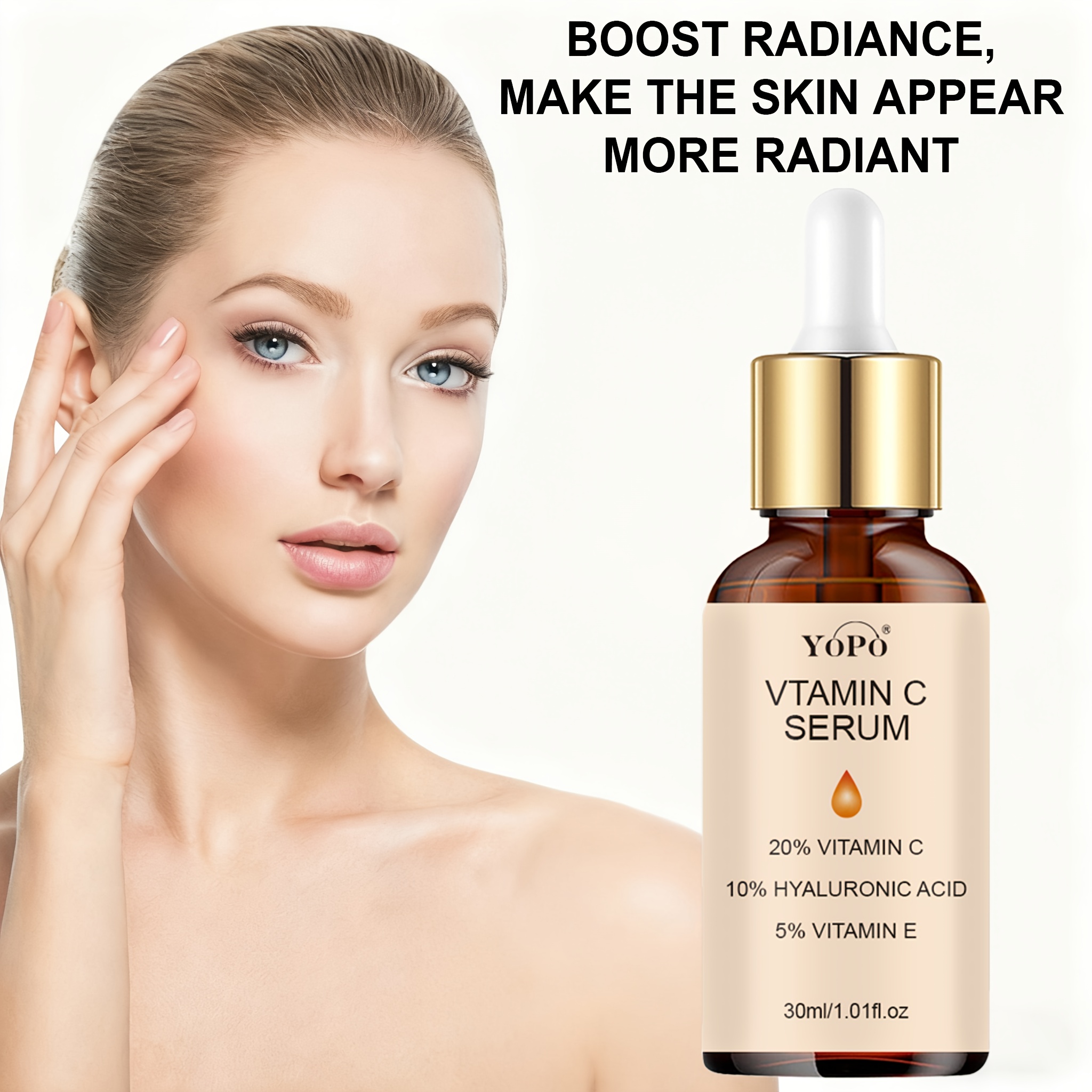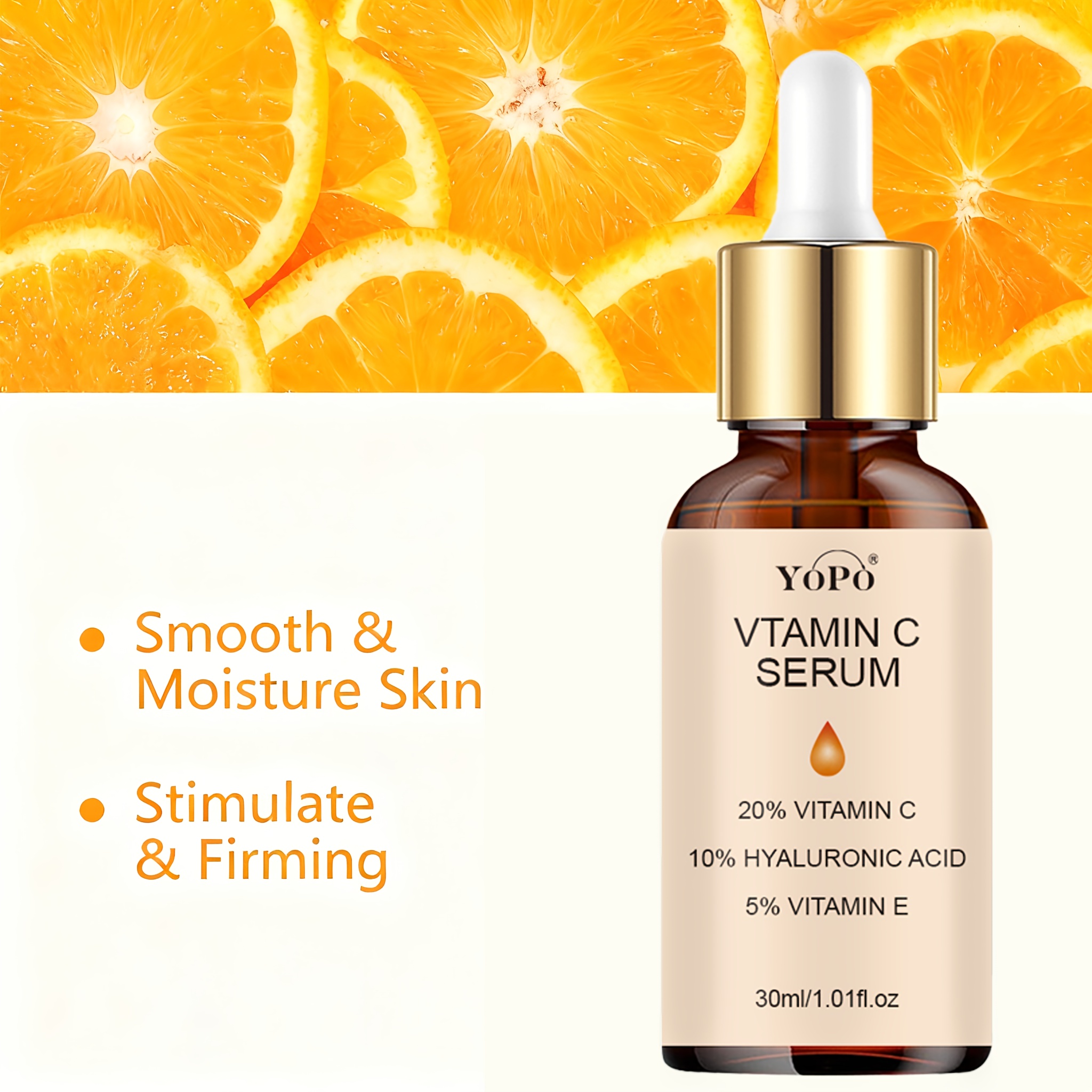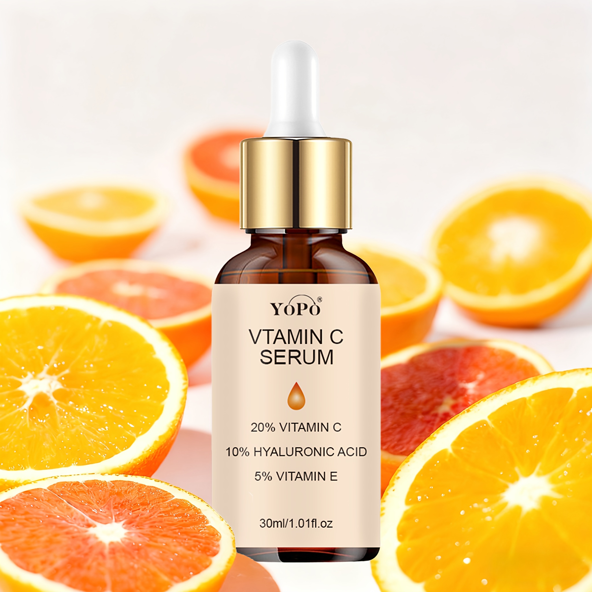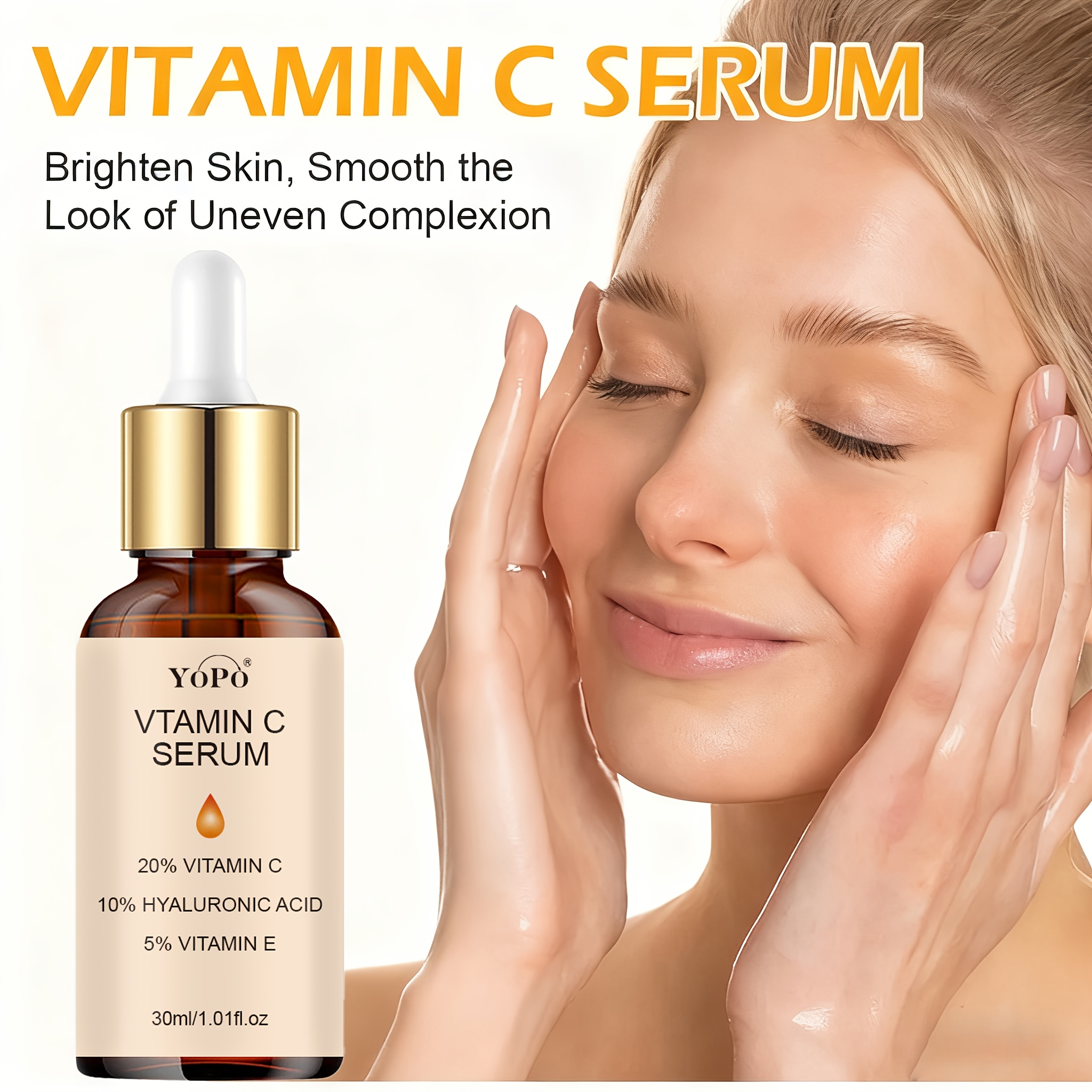 YOPO Sérum Visage Hydratant Vitamine C avec Acide Hyaluronique & Vitamine E – Non Gras, Absorption Rapide, Hydratation Profonde & Teint Unifié pour Tous Types de Peau Claire