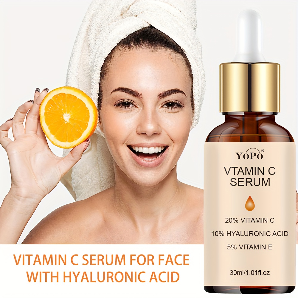 Accueil›Soins & Beauté›Accessoires beauté›YOPO Sérum Visage Hydratant Vitamine C avec Acide Hyaluronique & Vitamine E – Non Gras, Absorption Rapide, Hydratation Profonde & Teint Unifié pour Tous Types de Peau Claire