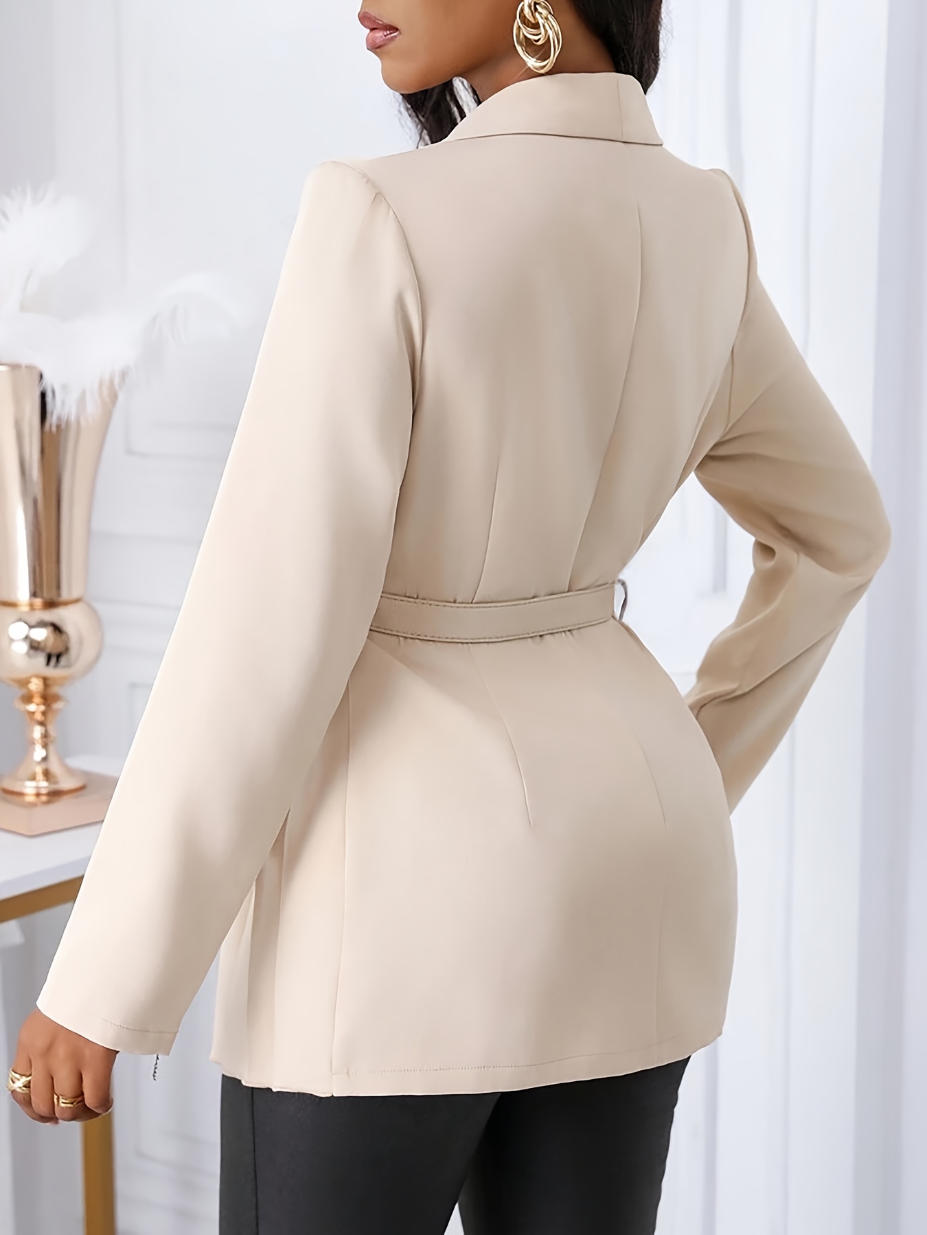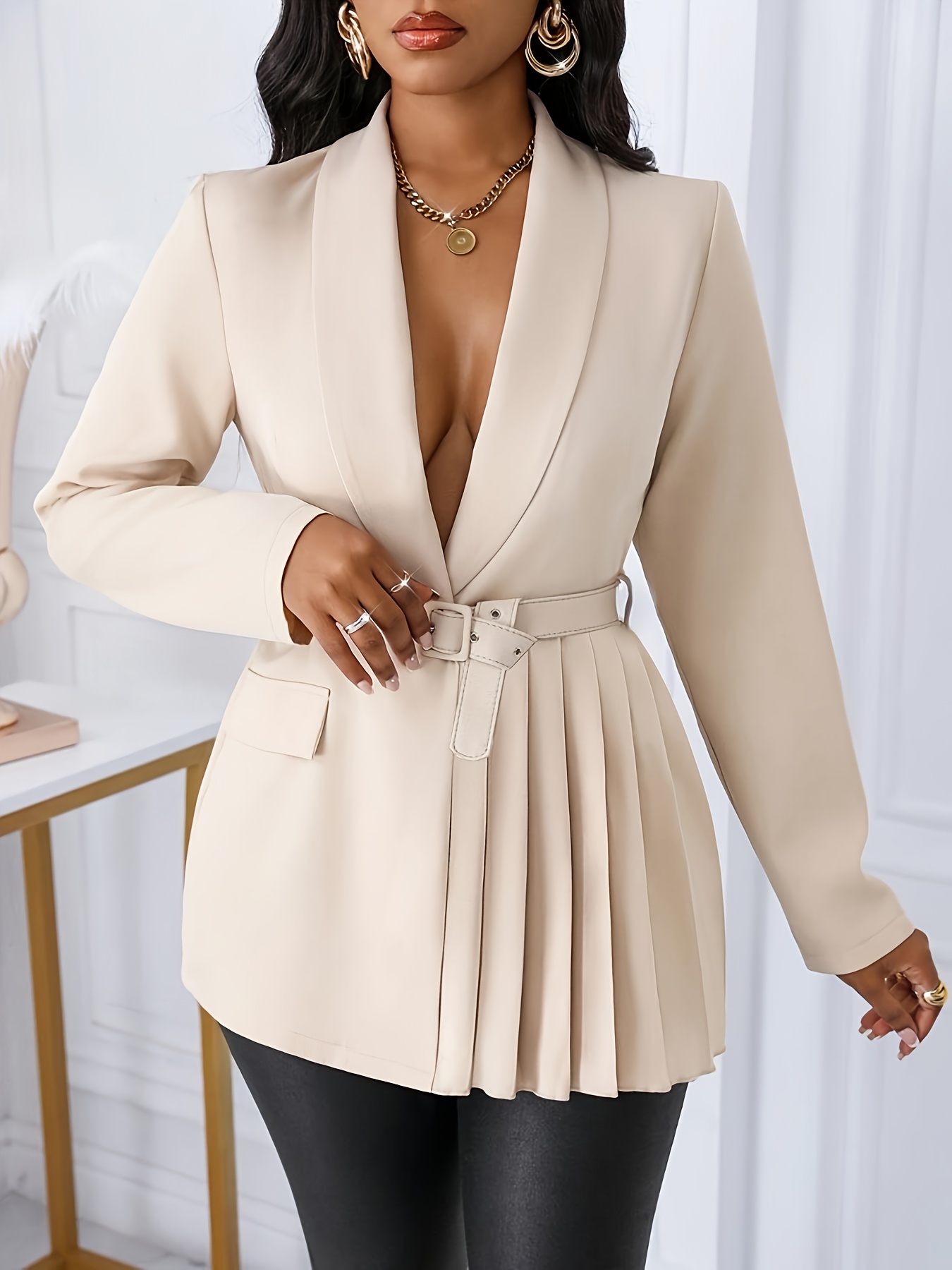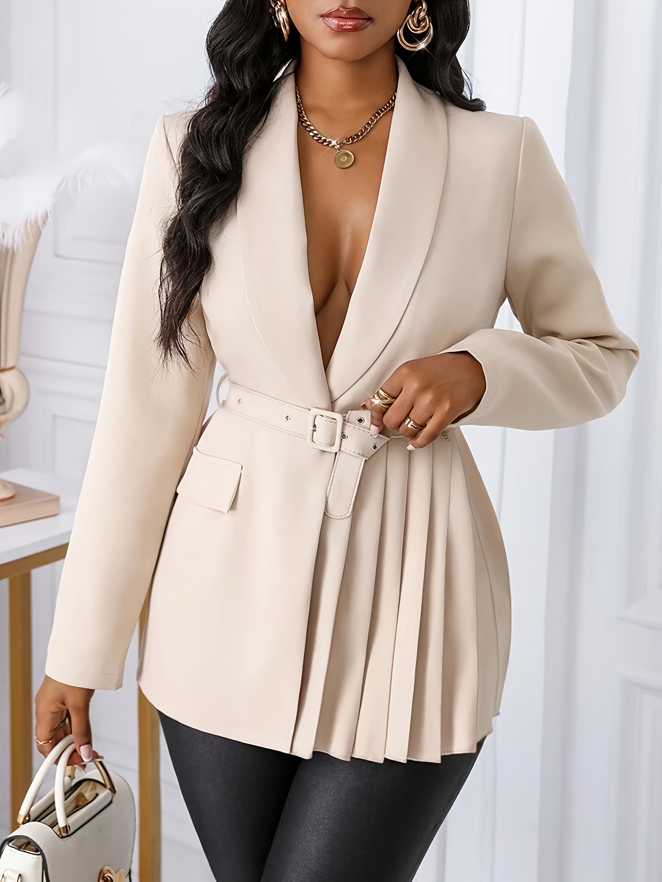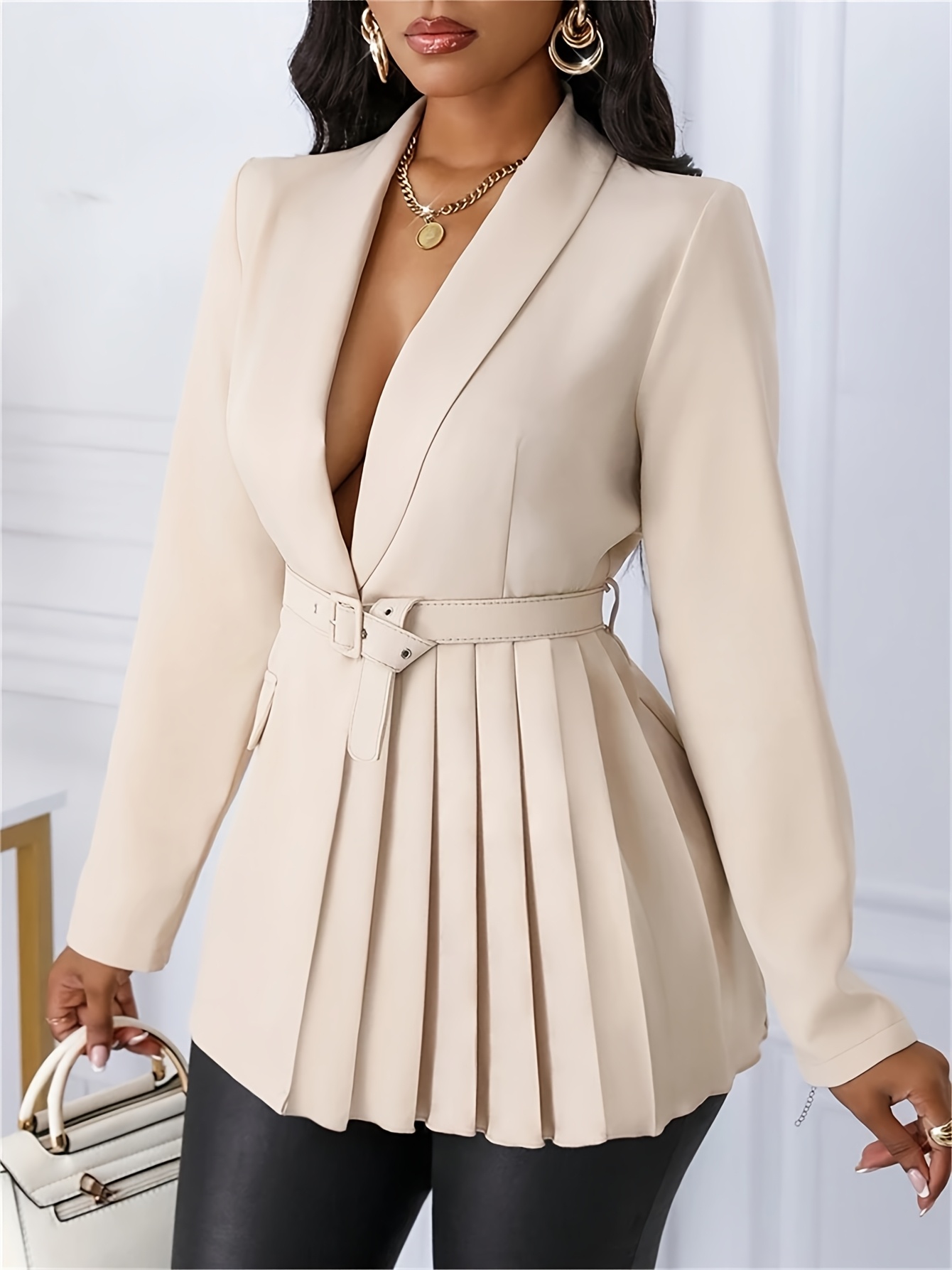YY0514976 Blazer Élégant pour Femme avec Col Châle, Design à Boucle Slim et Ourlet Plissé